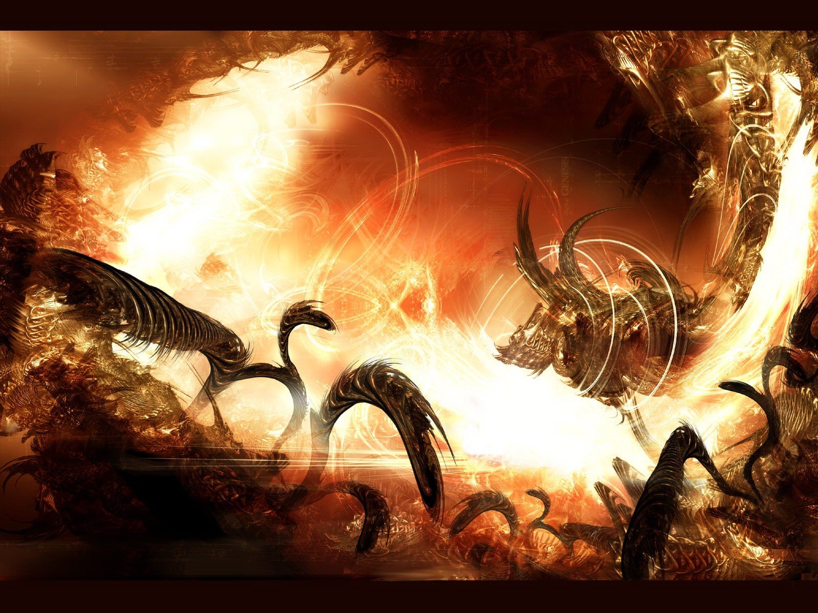 Monstres de l enfer sur fond de feu - fond d'écran de bureau