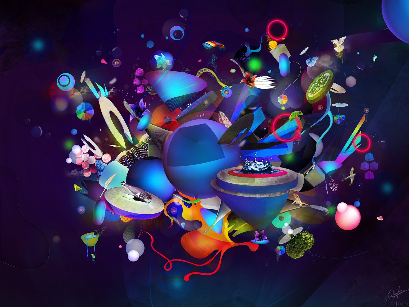 Formes multicolores abstraites sur fond sombre - fond d'écran de téléphone