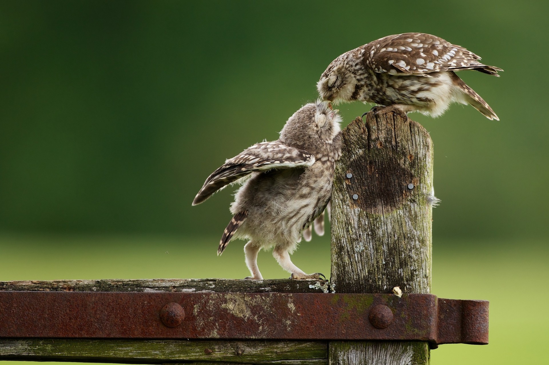 Chouette poussin se nourrissant sur fond flou - fond d'écran de bureau