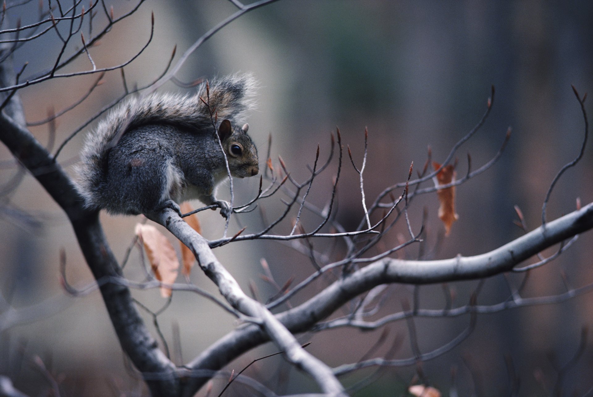 Écureuil gris caché sur une branche d arbre - fond d'écran de bureau