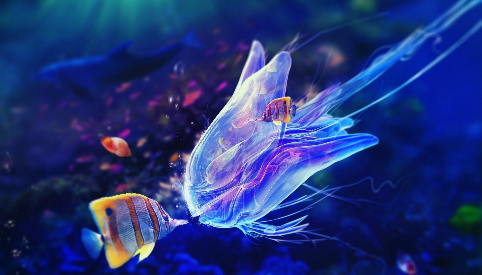La vie sous-marine. Poissons et méduses - fond d'écran de bureau