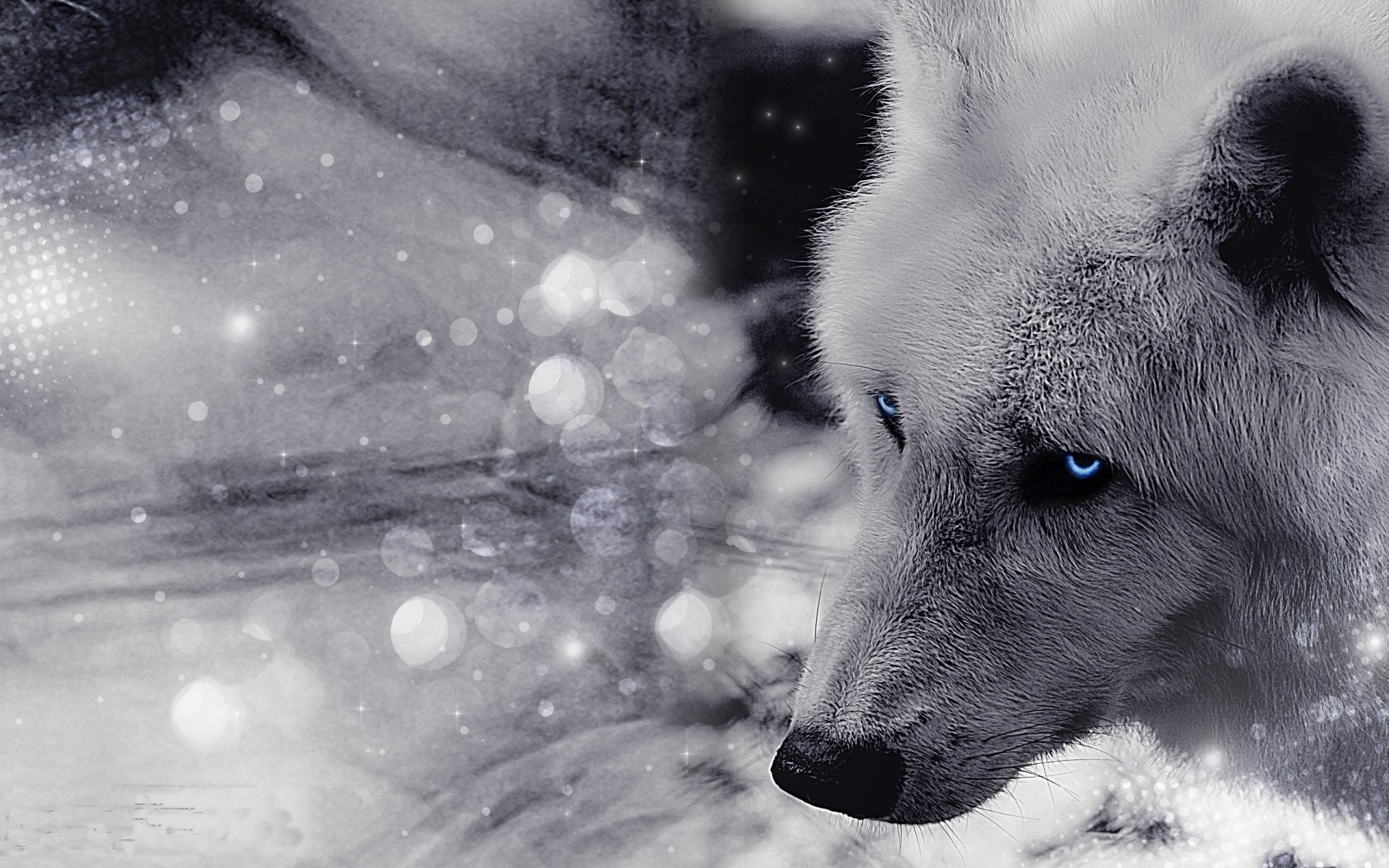 Loup blanc avec de beaux yeux - fond d'écran de bureau