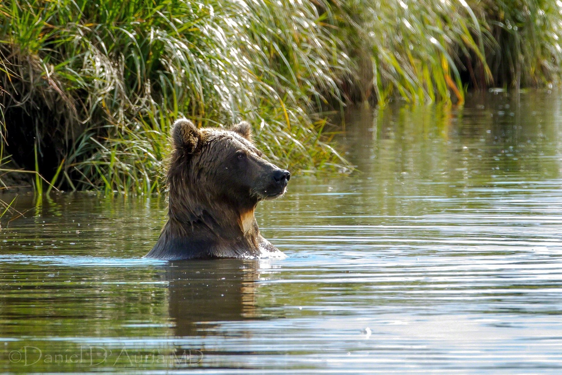 Ours valyazhny se baigne dans le lac - fond d'écran de bureau