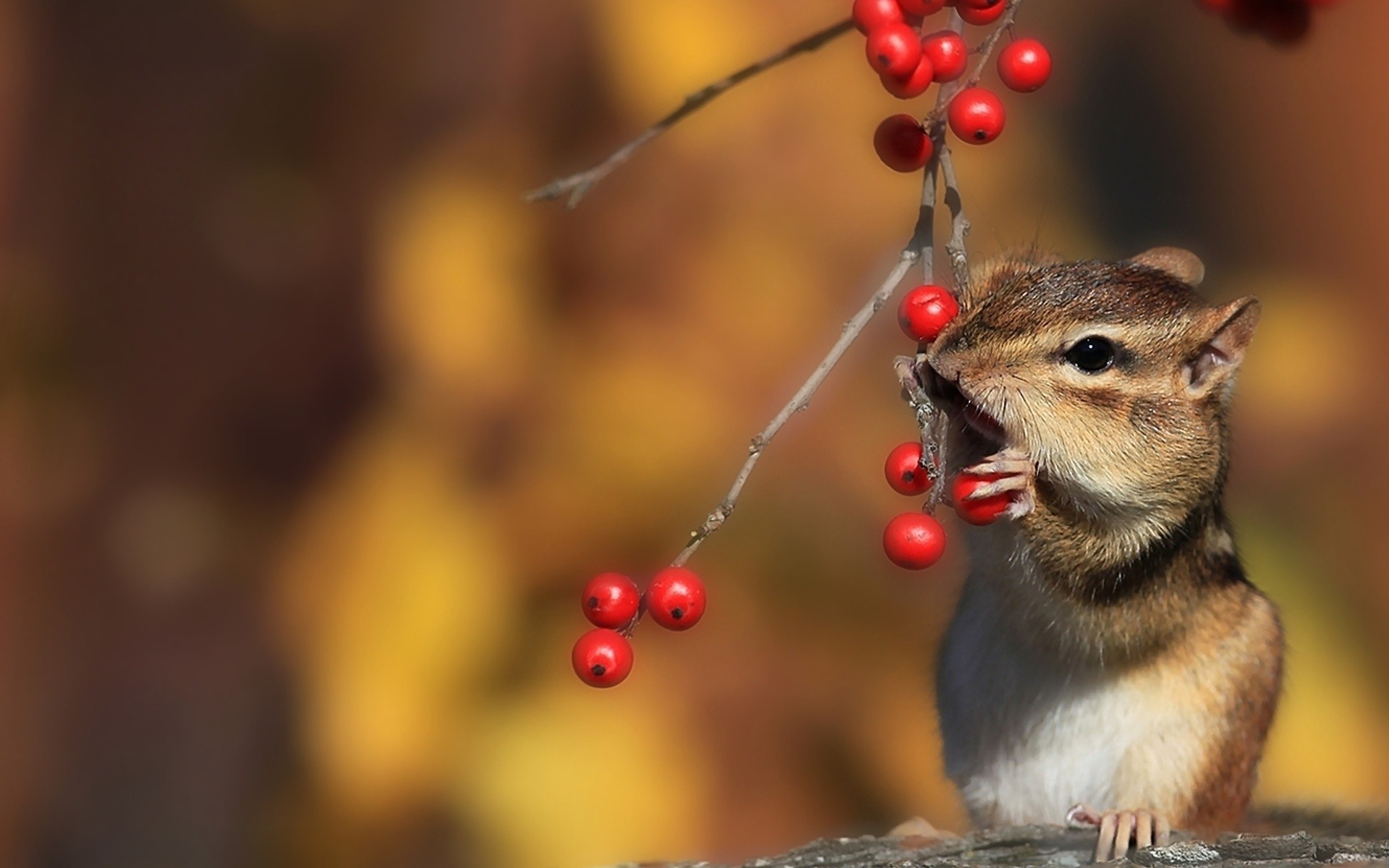Tamia aux baies de sorbier sur fond jaune - fond d'écran de bureau