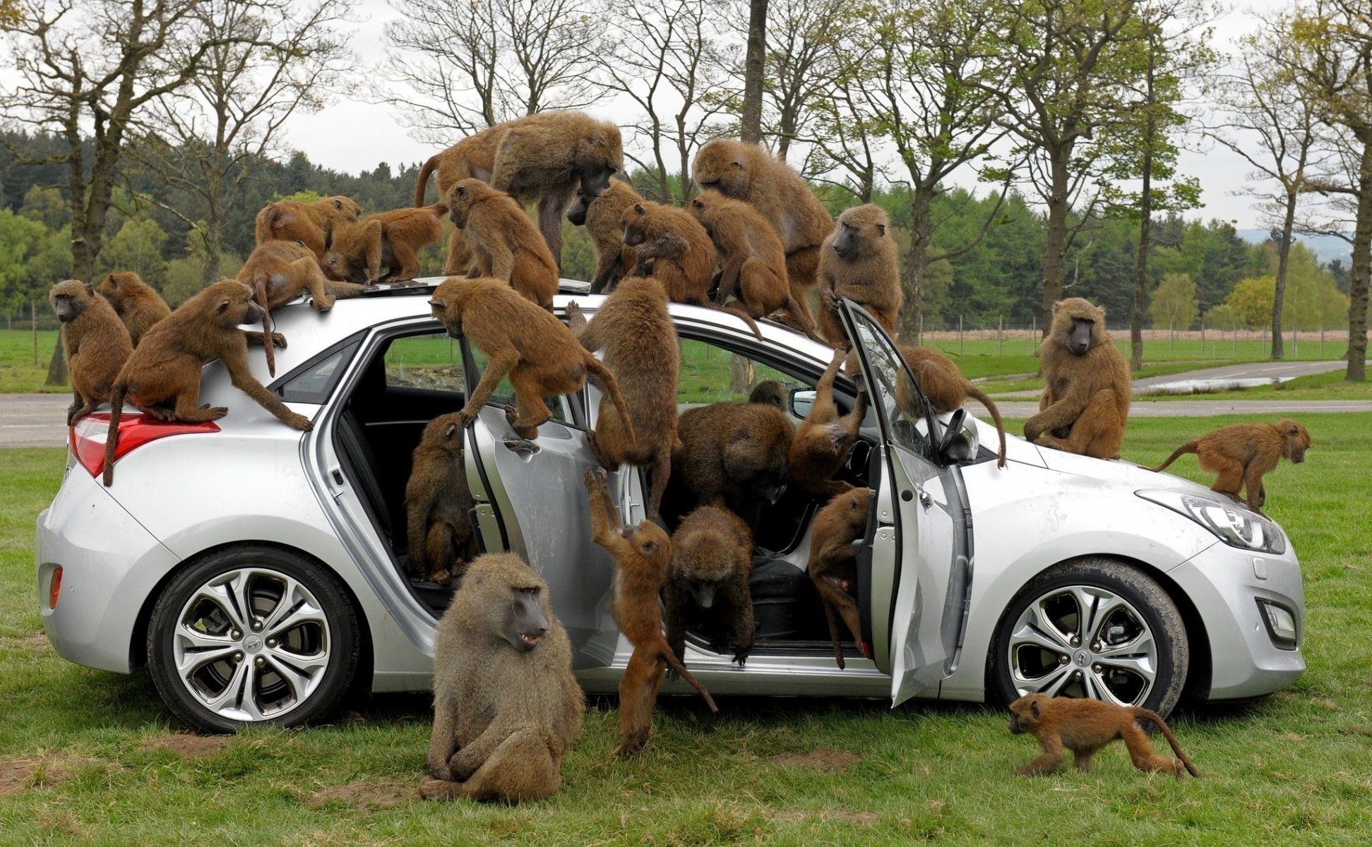 Une famille de singes attaqués par une voiture - fond d'écran de bureau