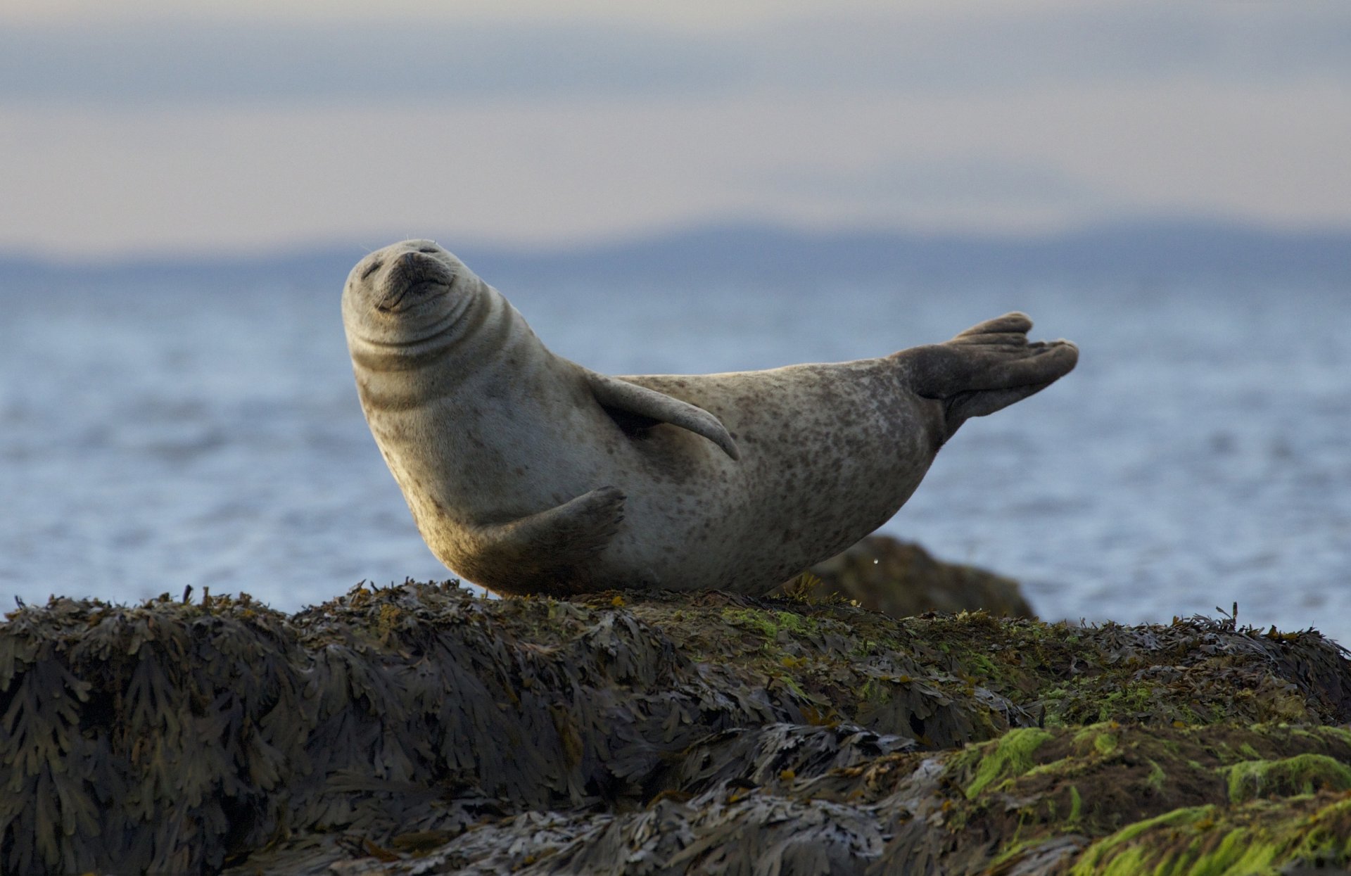 Sourire de phoque. phoque sur la plage. phoque posant sur les rochers - fond d'écran de téléphone