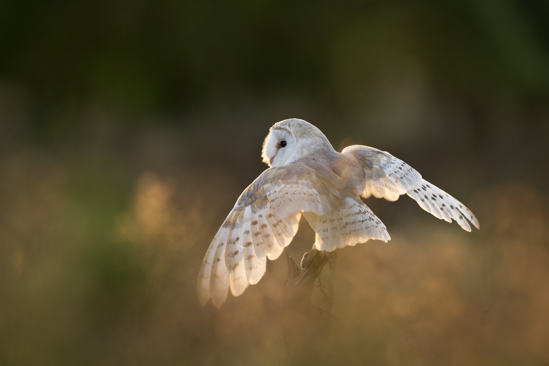 Hibou blanc agitant ses ailes en descendant vers le sol - fond d'écran de téléphone