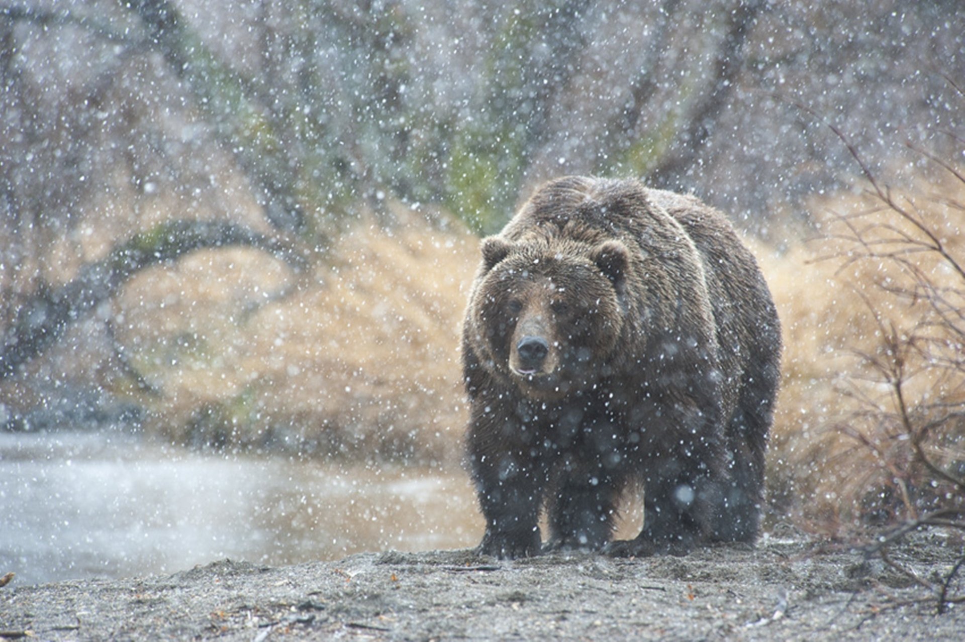 Ours du Kamtchatka sous la neige - fond d'écran de téléphone