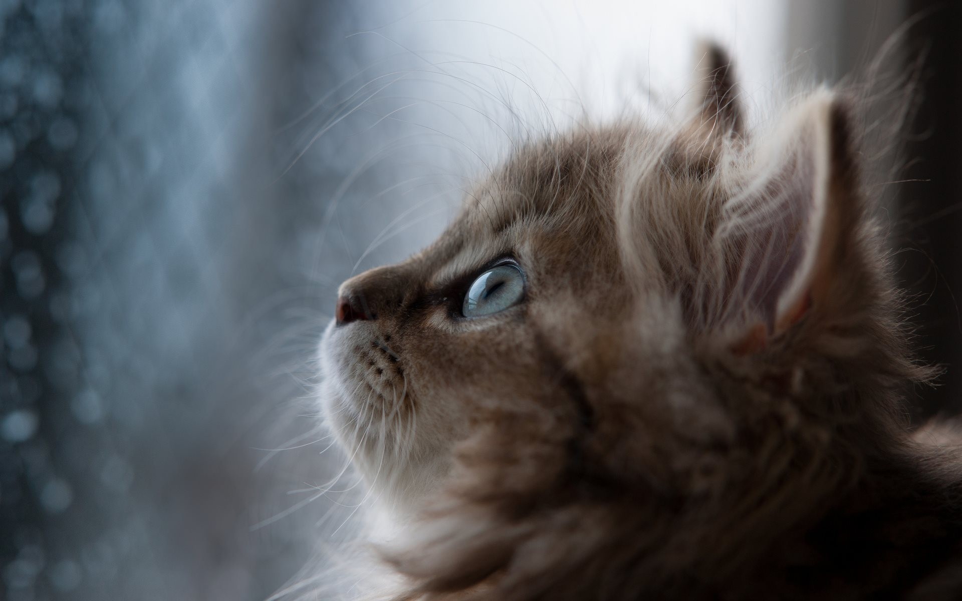 Petit chaton rayé regardant vers le haut - fond d'écran de téléphone