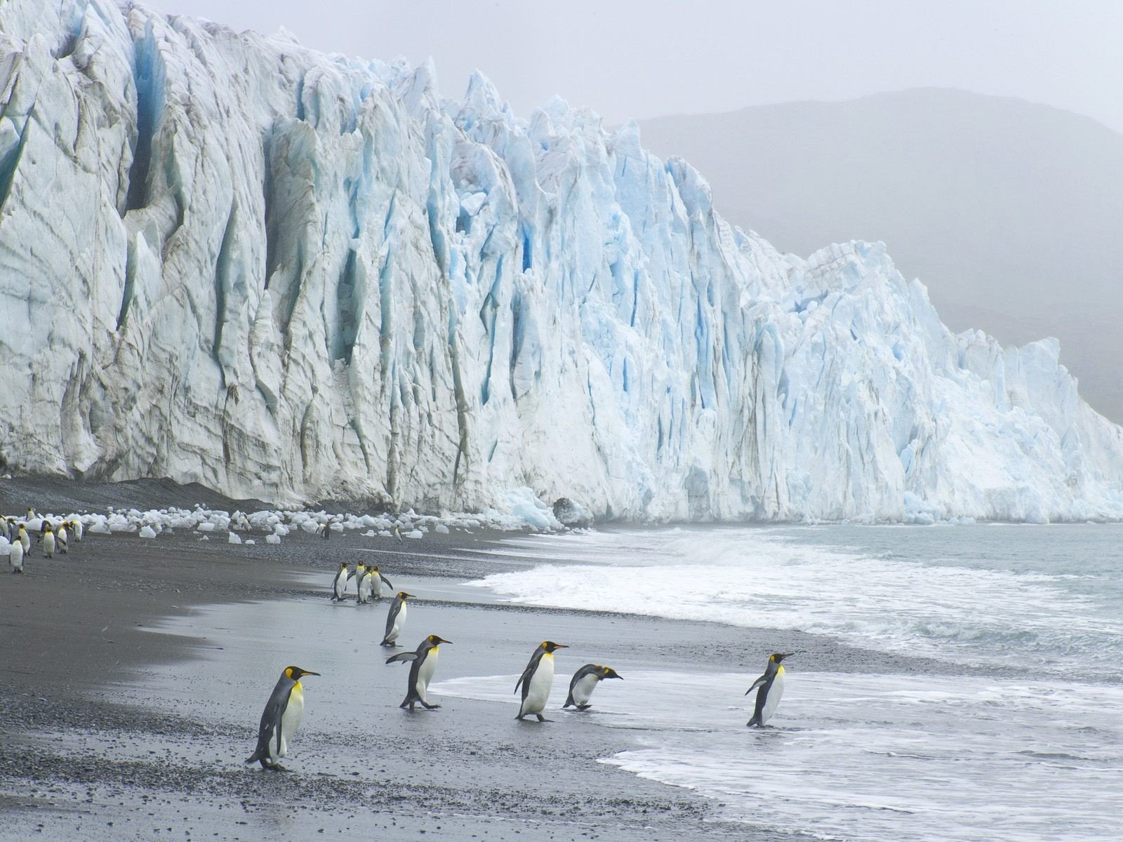 Pingouins au bord de la mer près du glacier - fond d'écran de téléphone