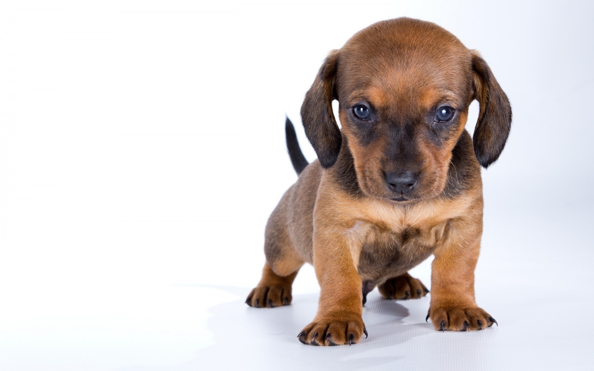 Teckel chiot mignon sur fond blanc - fond d'écran de téléphone