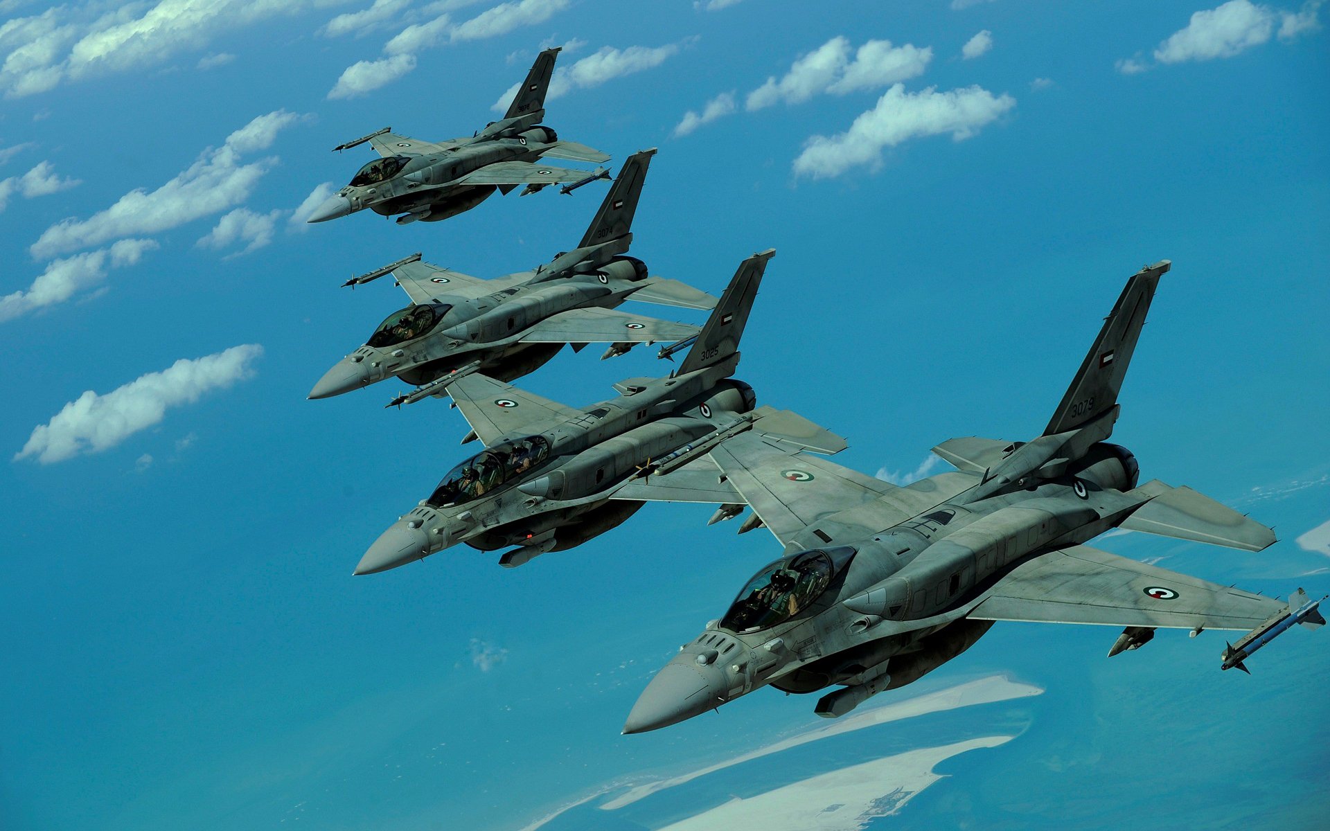 Avions de chasse dans le ciel volent dans les nuages - fond d'écran de bureau