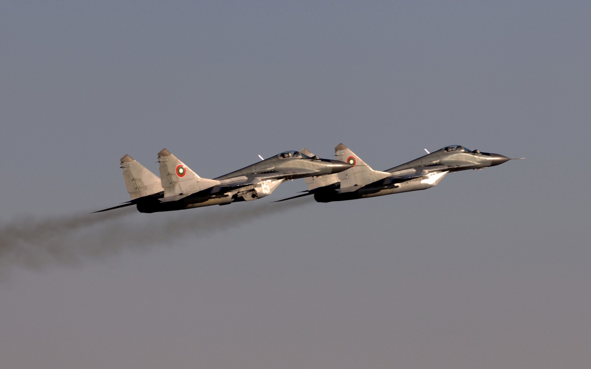 Combattant dans le ciel au-dessus des nuages gris - fond d'écran de bureau