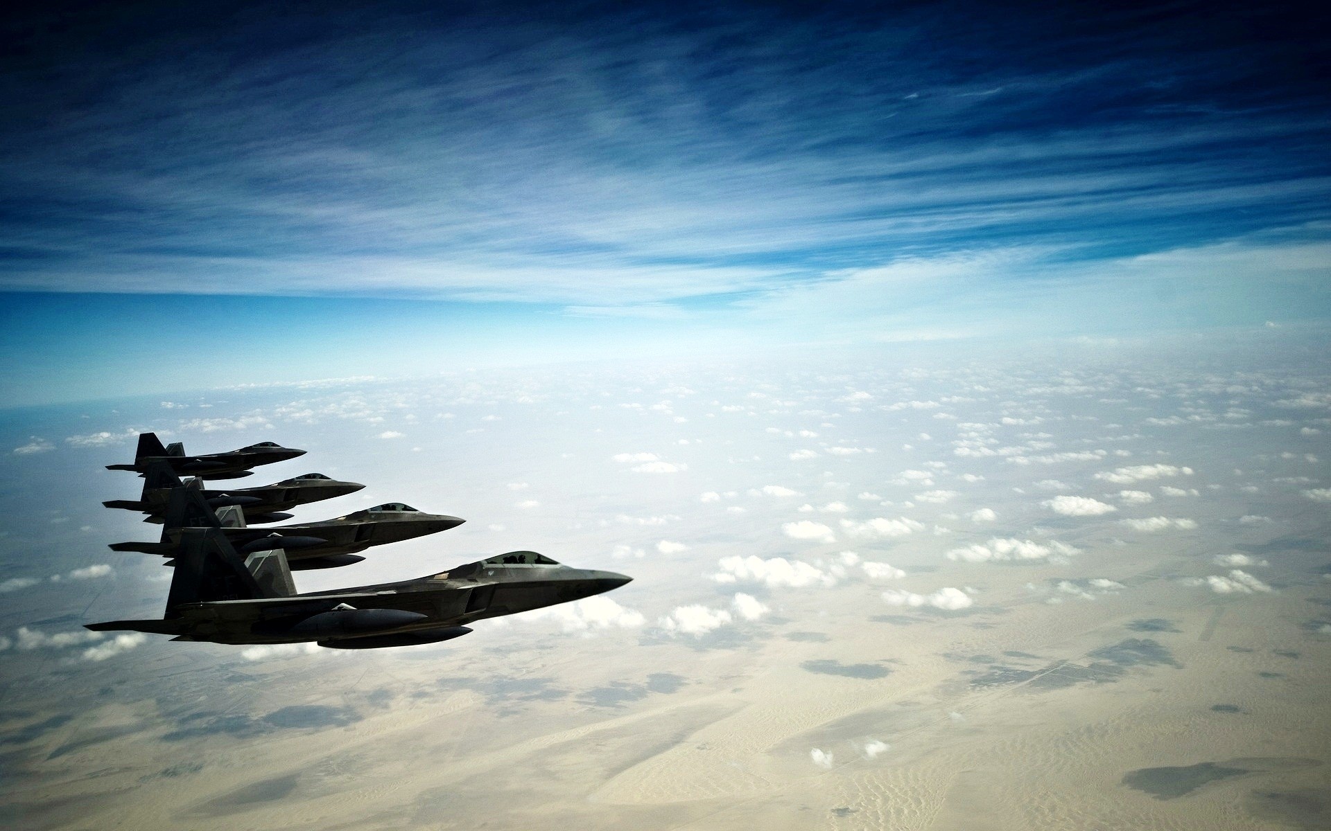 Avions de combat Raptor au poste de combat - fond d'écran de bureau