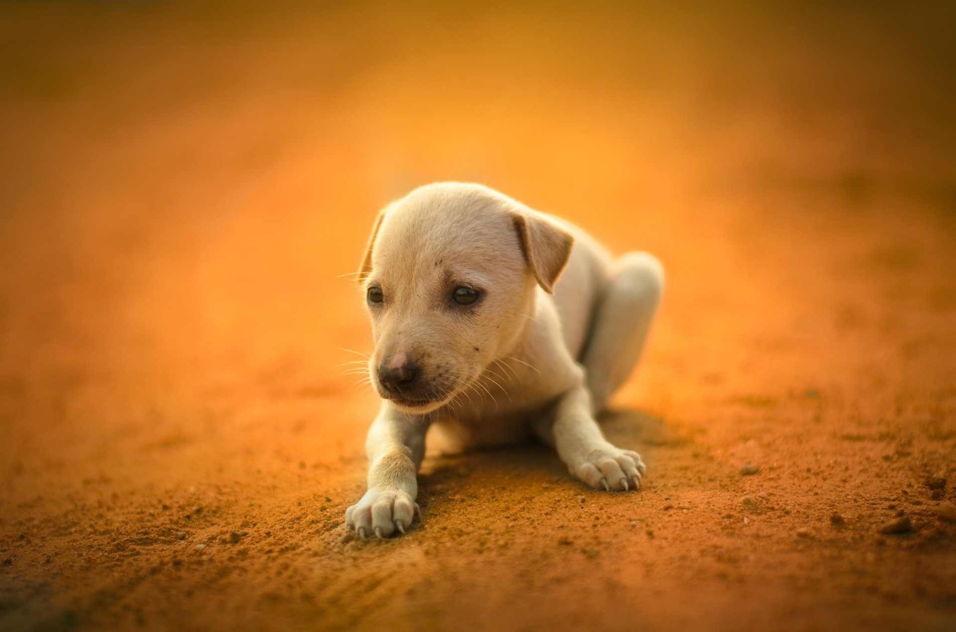 Chiot sur le sol sablonneux - fond d'écran de bureau