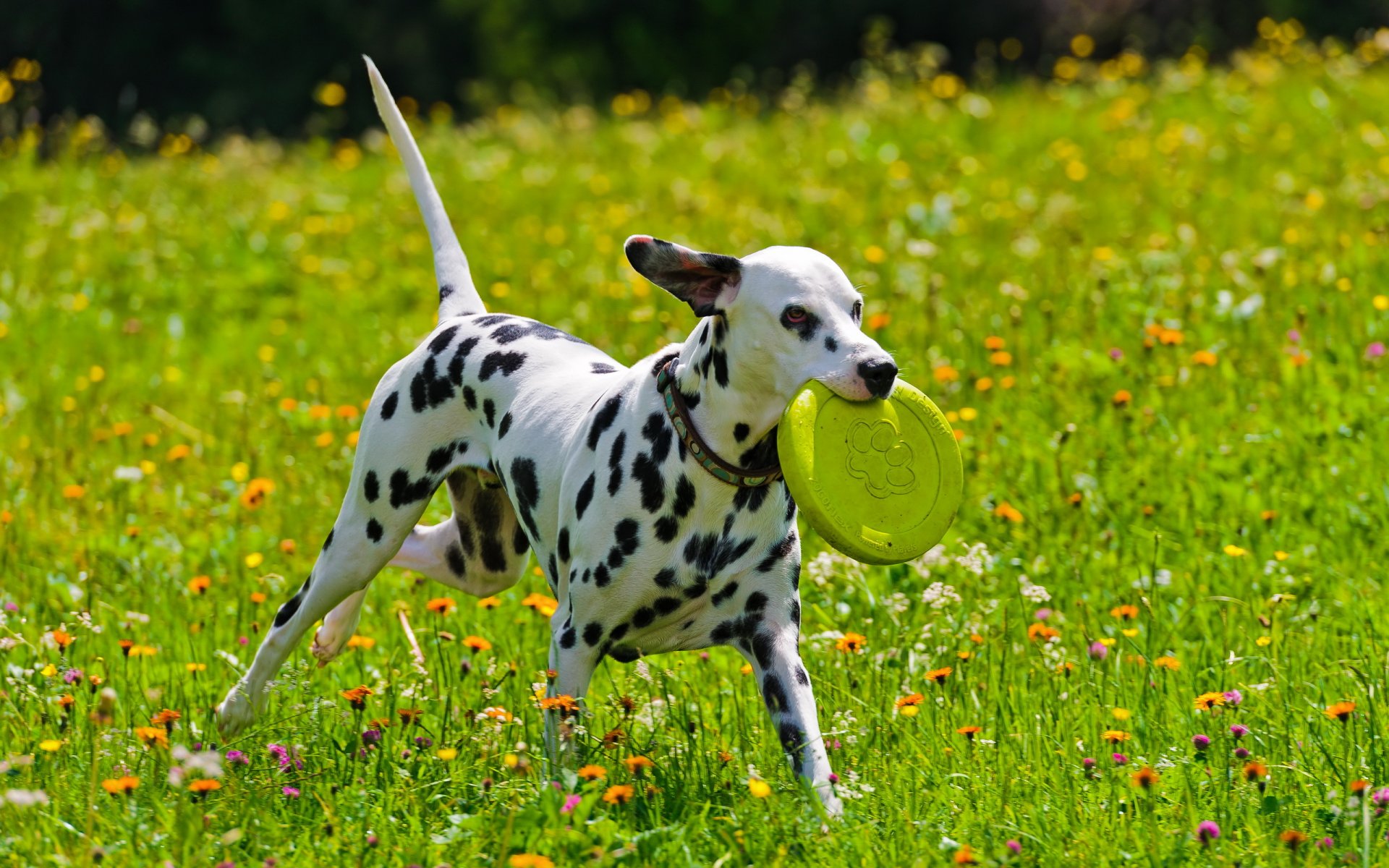 Dolmatin joue avec une soucoupe volante - fond d'écran de bureau