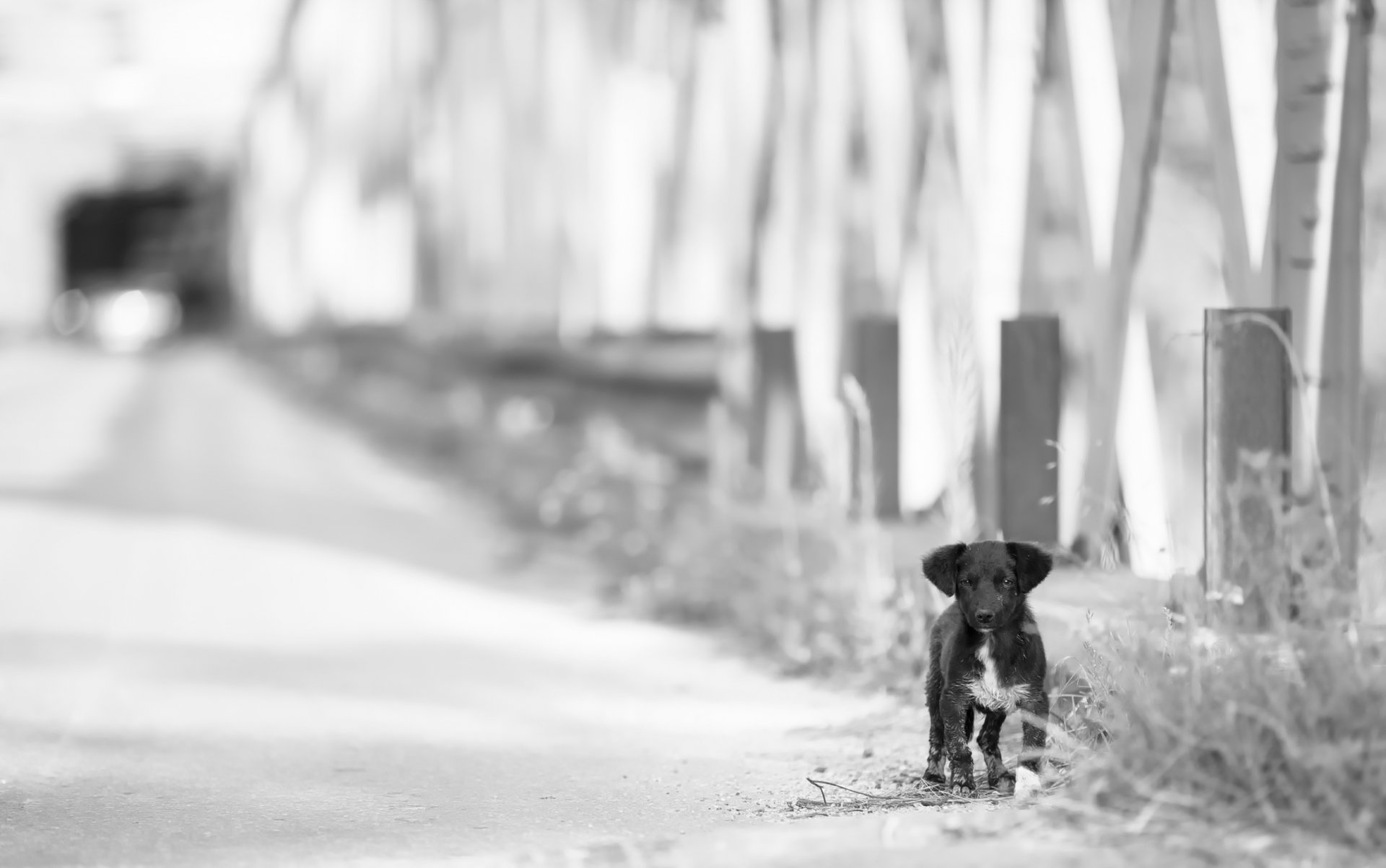 Photo noir et blanc d un chiot - fond d'écran de bureau
