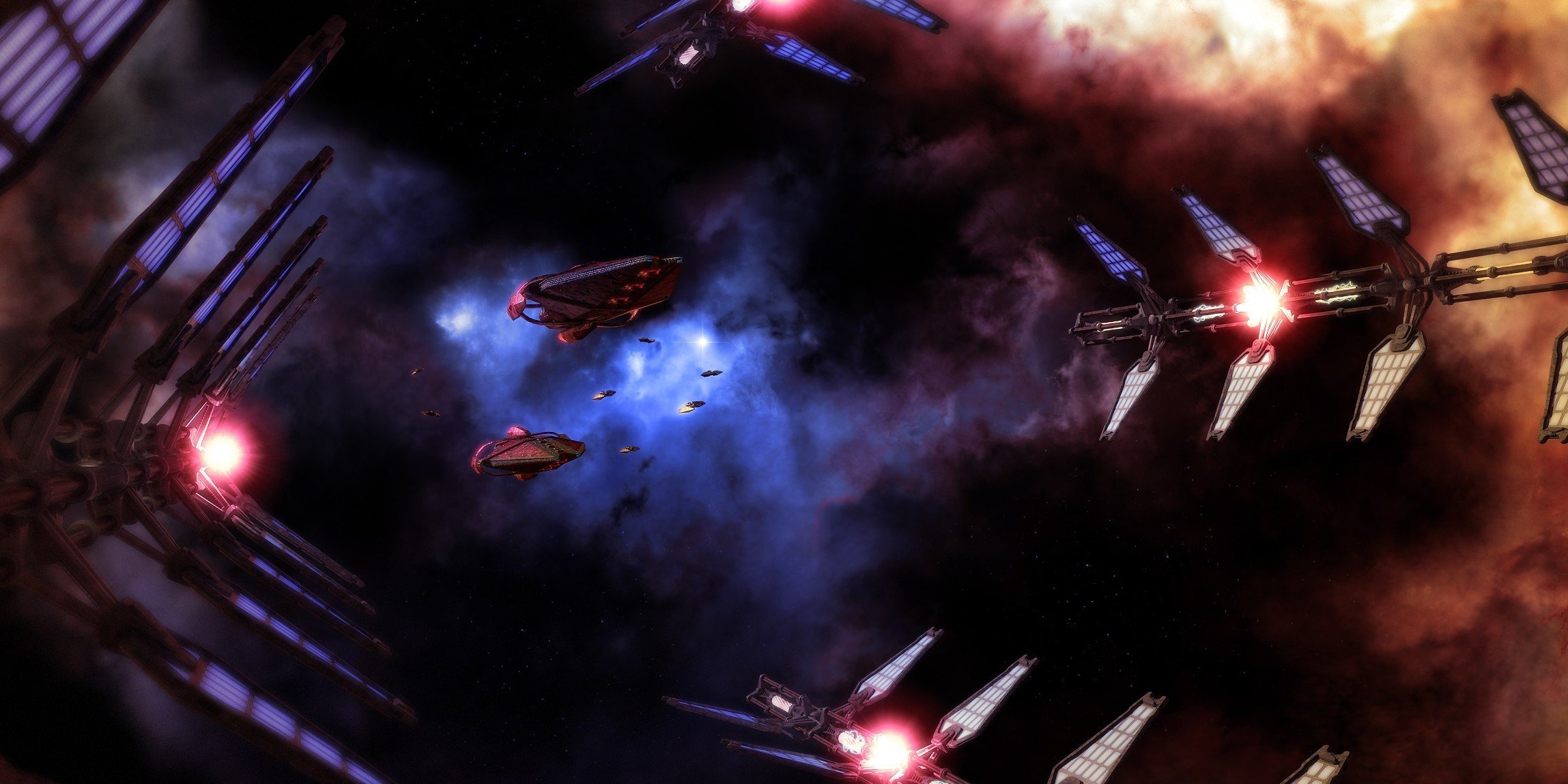 Les vaisseaux spatiaux sillonnent les étendues de l univers - fond d'écran de bureau