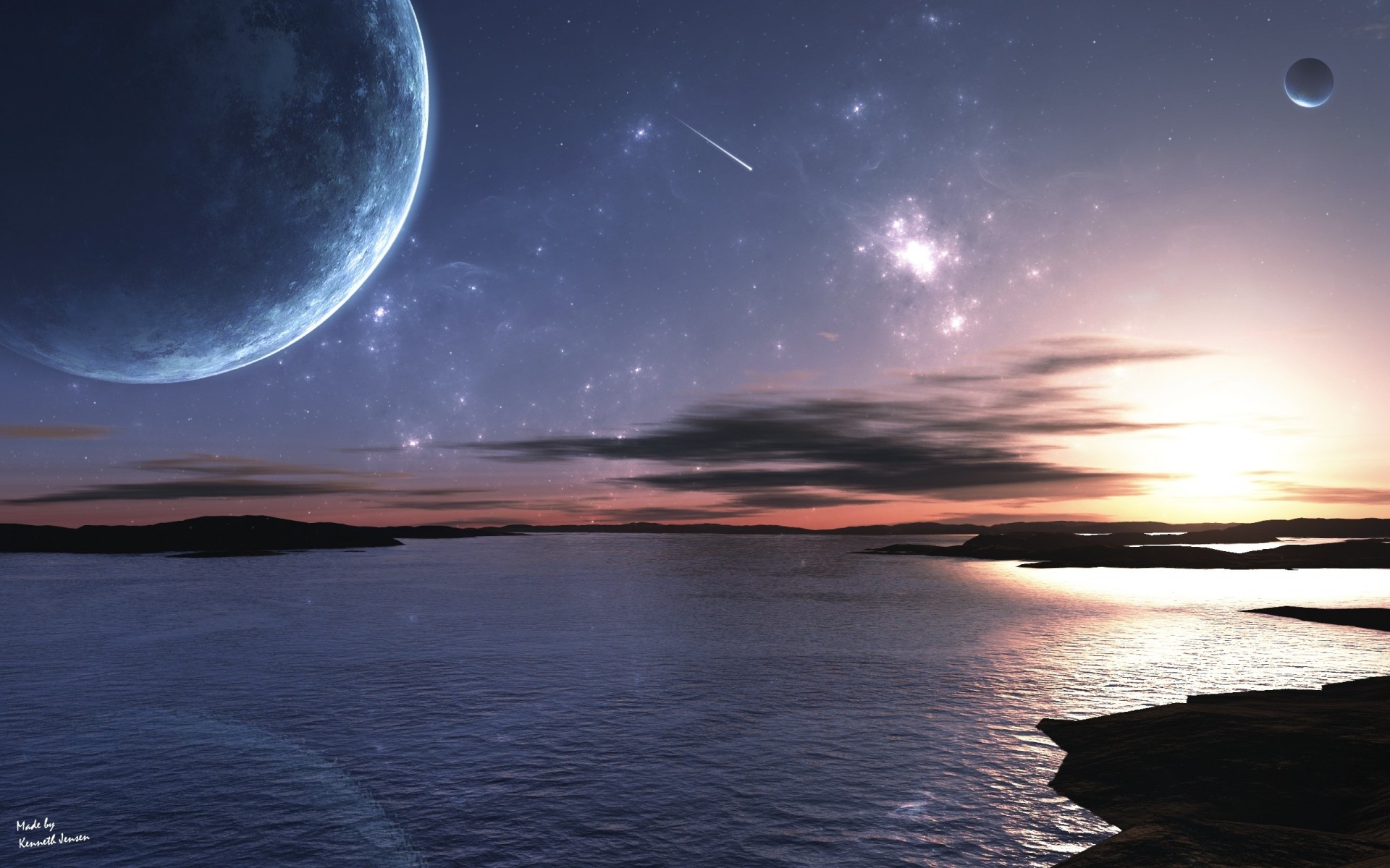 Étoile volante dans le ciel sur fond de coucher de soleil - fond d'écran de bureau