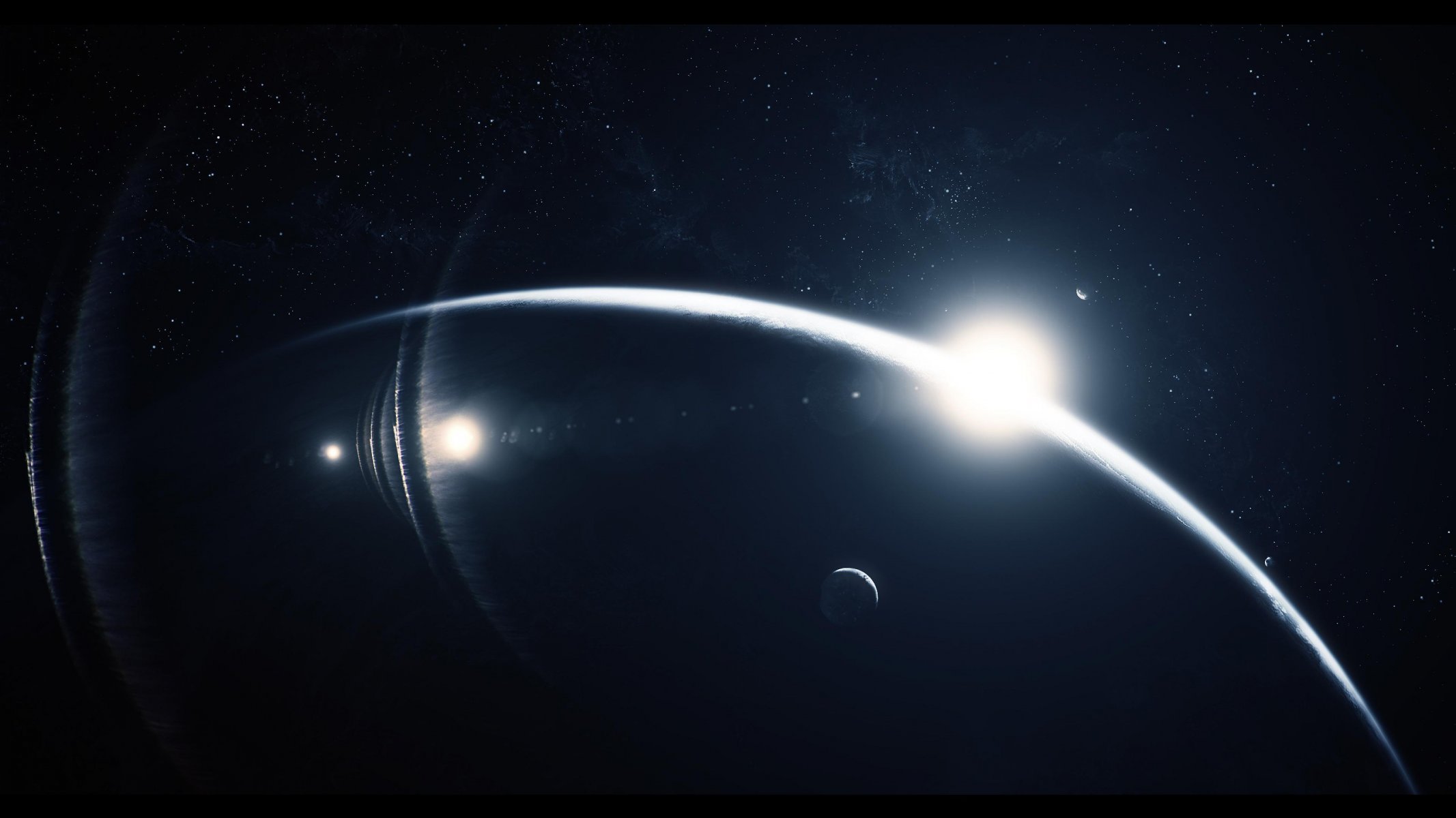 Paysage cosmique de la planète dans le soleil de l aube - fond d'écran de téléphone