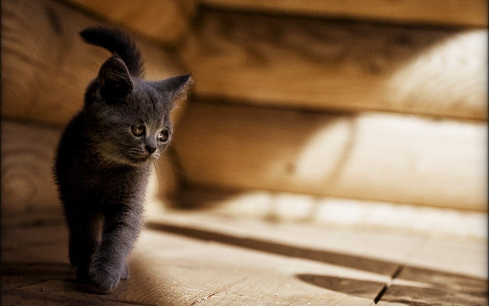 Chaton gris vient à la lumière - fond d'écran de bureau