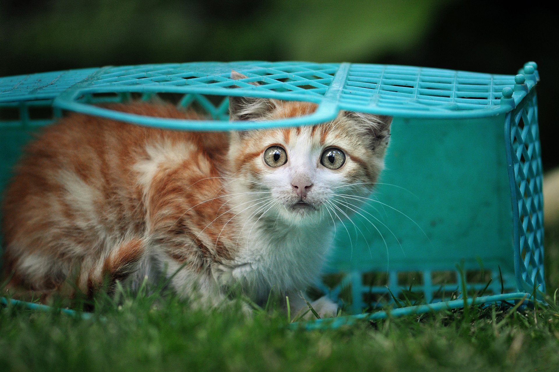 Tags:roux, effrayé, regard, panier, bleu, herbe
