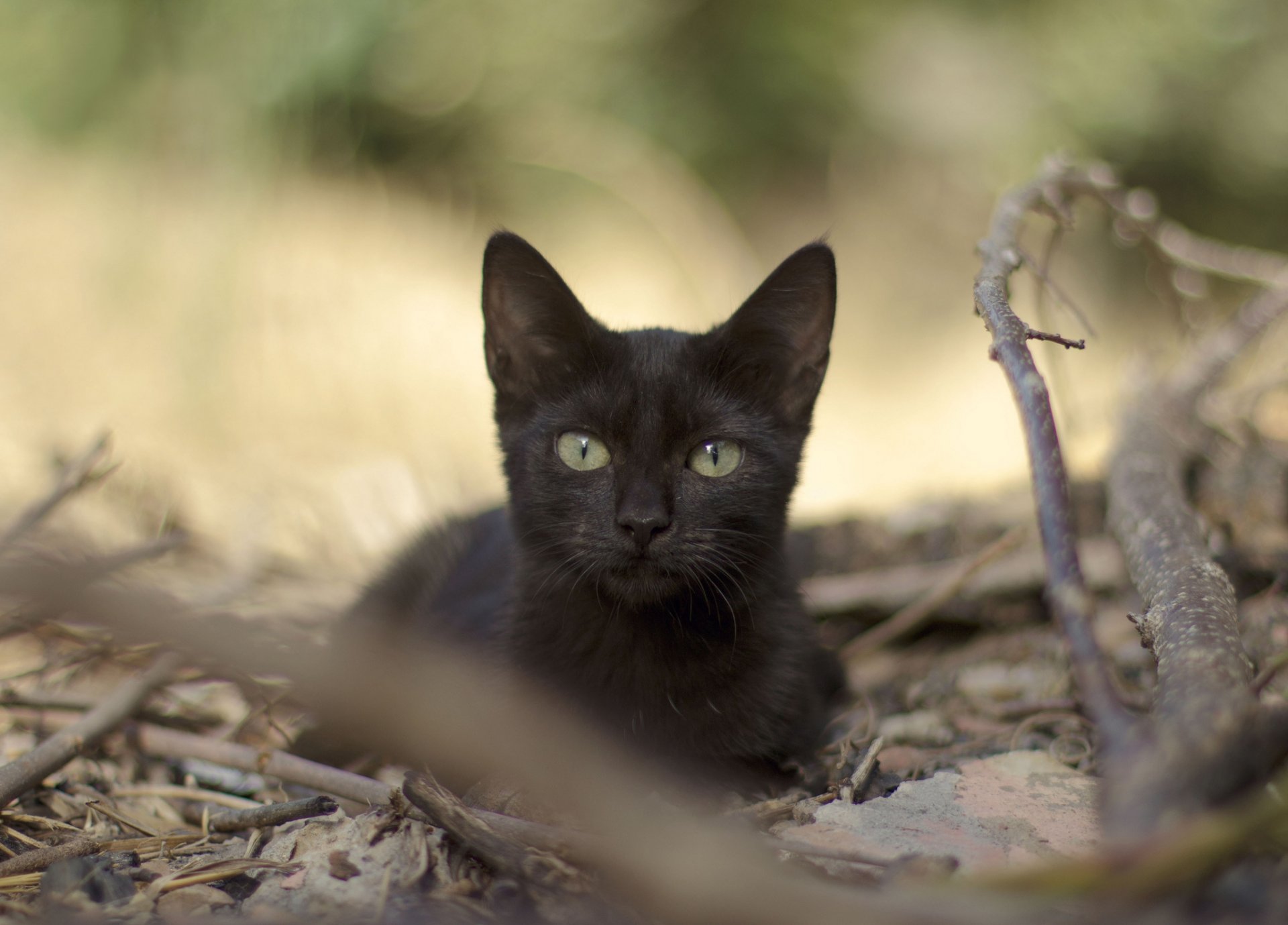 Vue d un chat noir au milieu du feuillage - fond d'écran de bureau