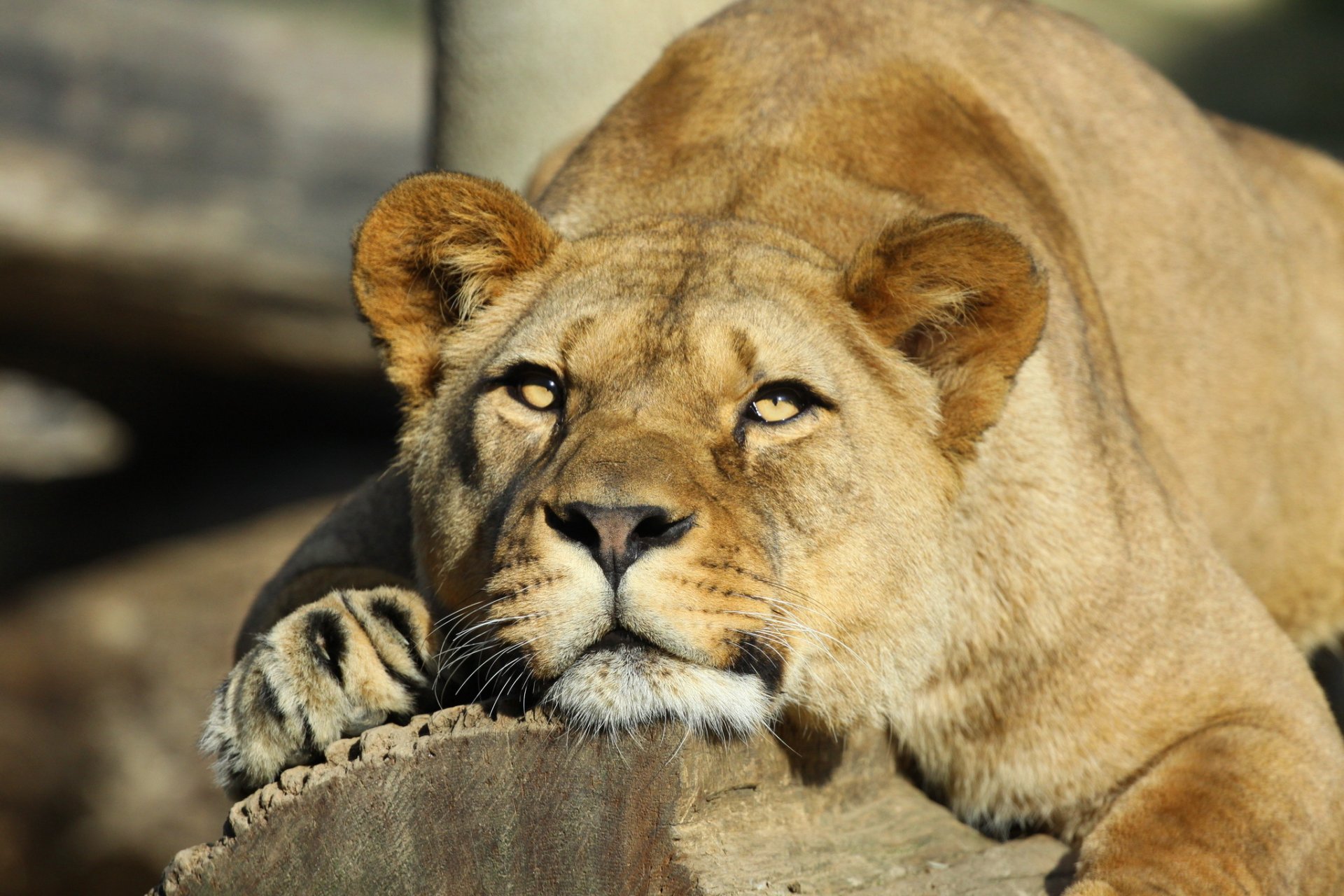 Tags:lion, lionne, museau, repos, regard