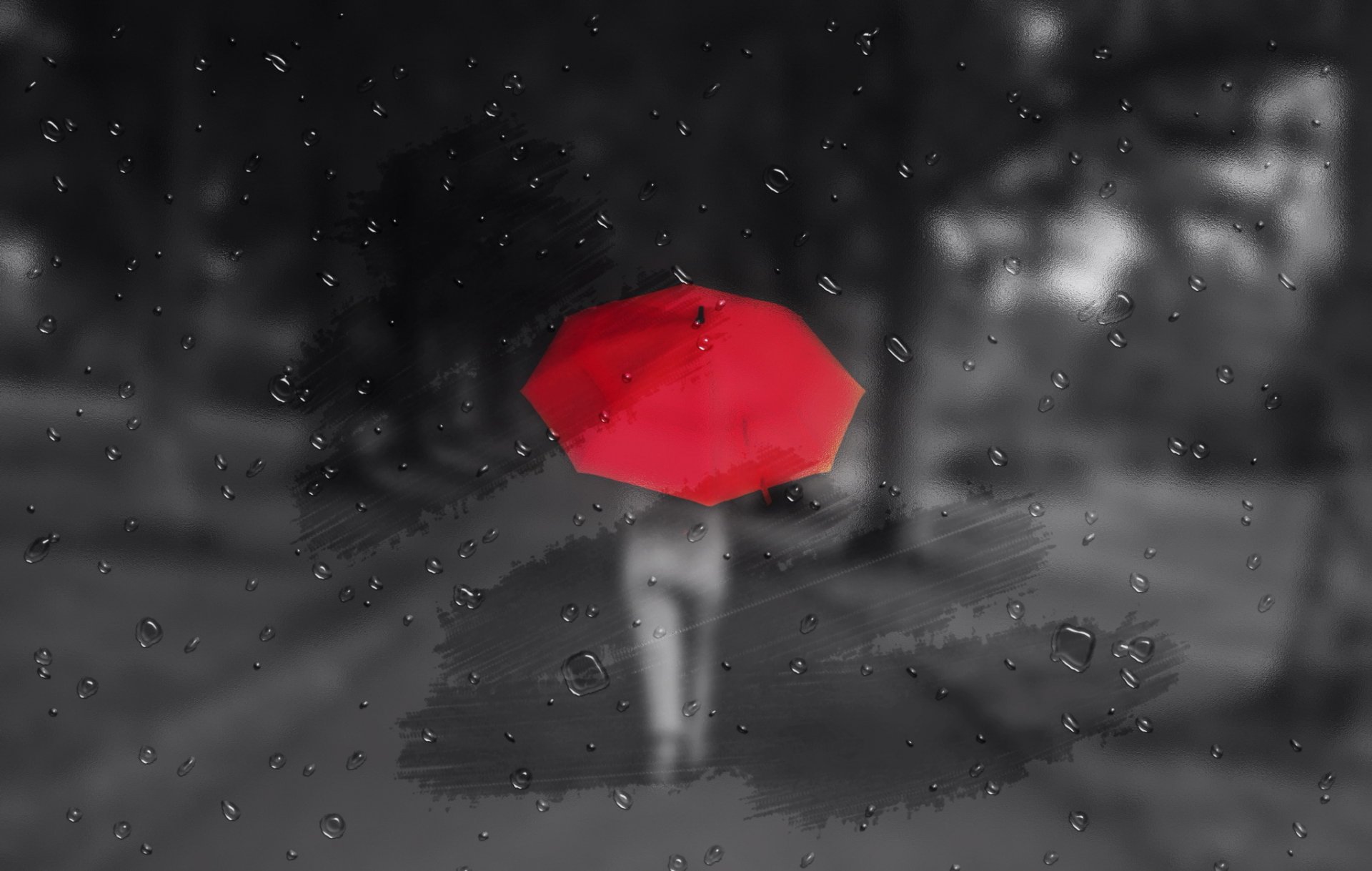 Parapluie rouge sur une photo en noir et blanc - fond d'écran de bureau