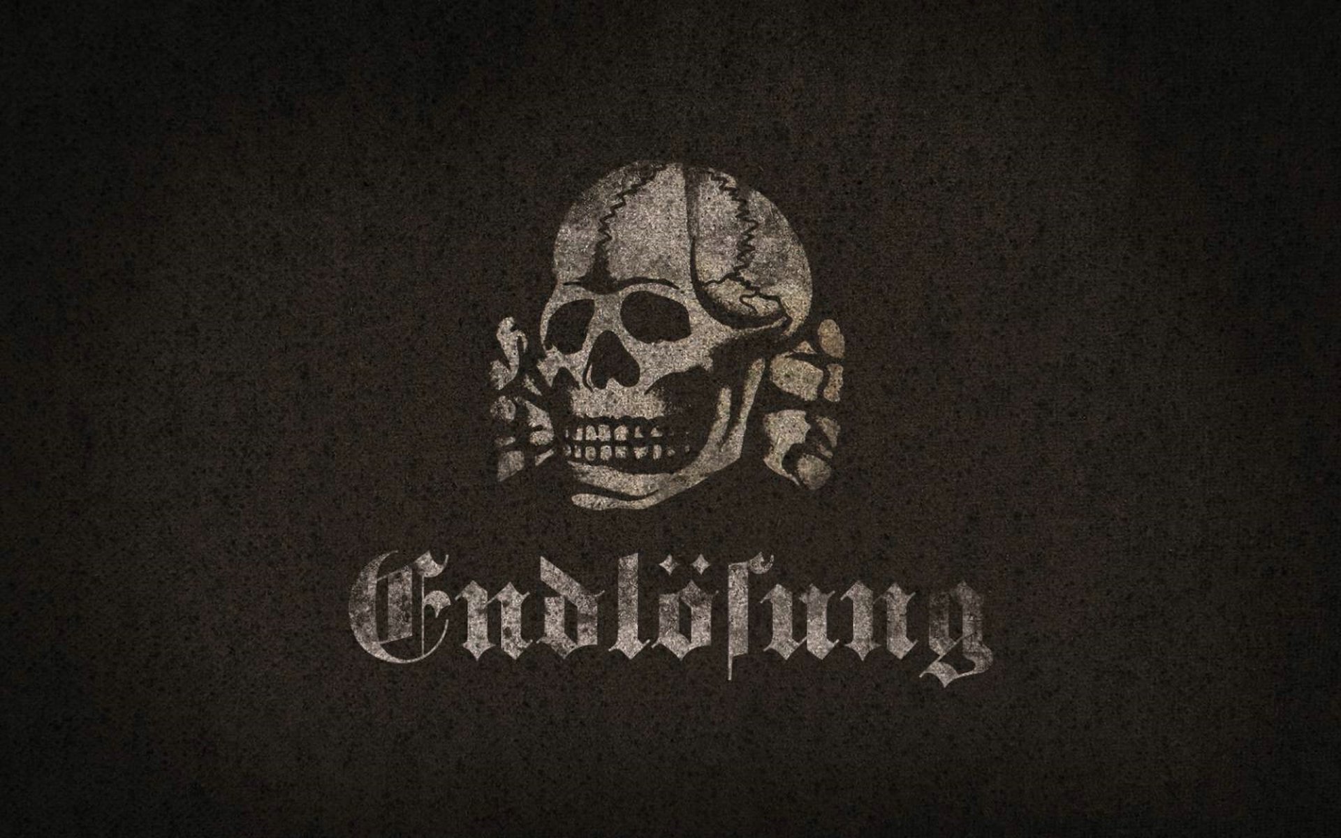Logo avec crâne et inscription en bas - fond d'écran de bureau