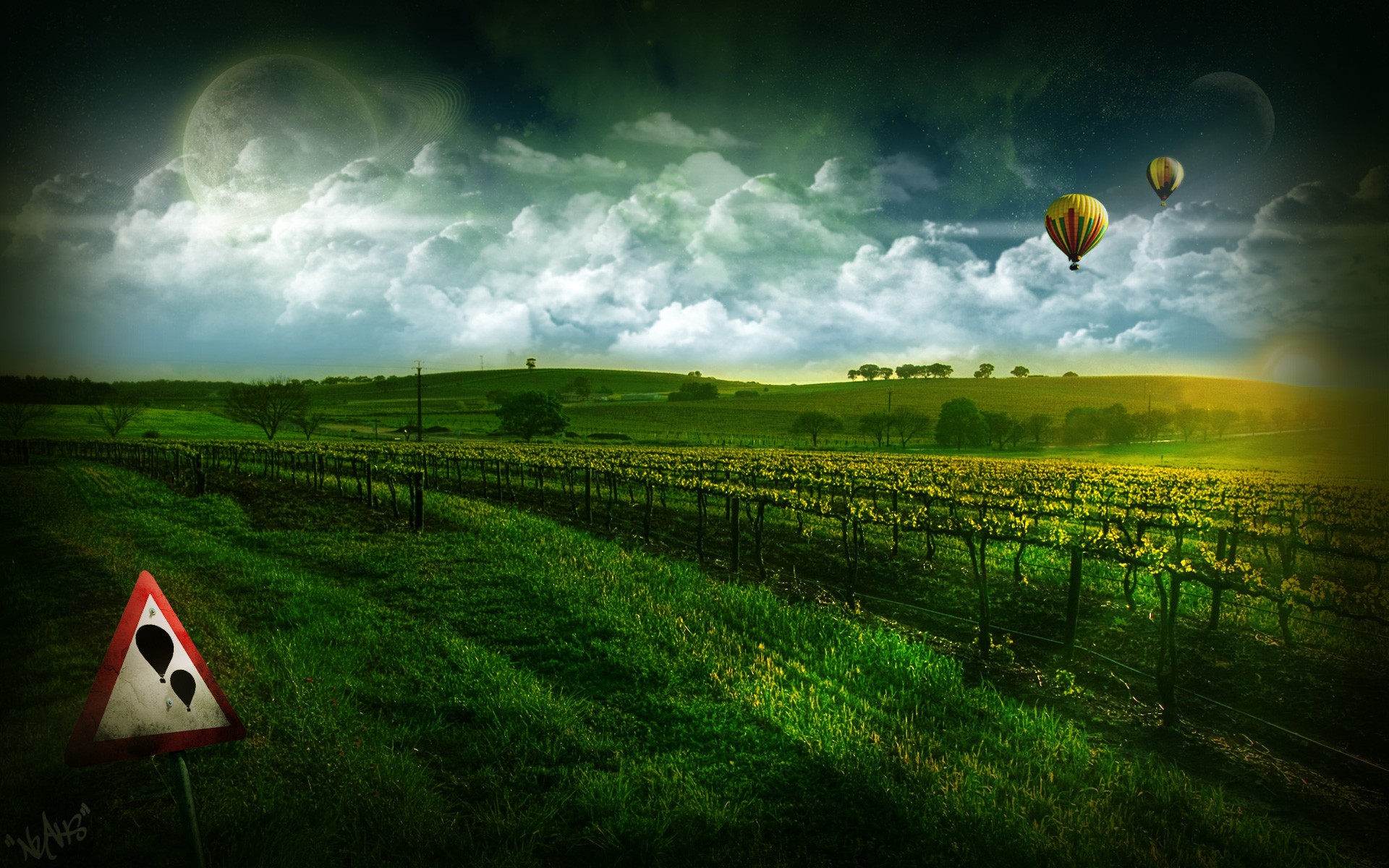 Des ballons se sont levés au-dessus des prairies verdoyantes - fond d'écran de téléphone