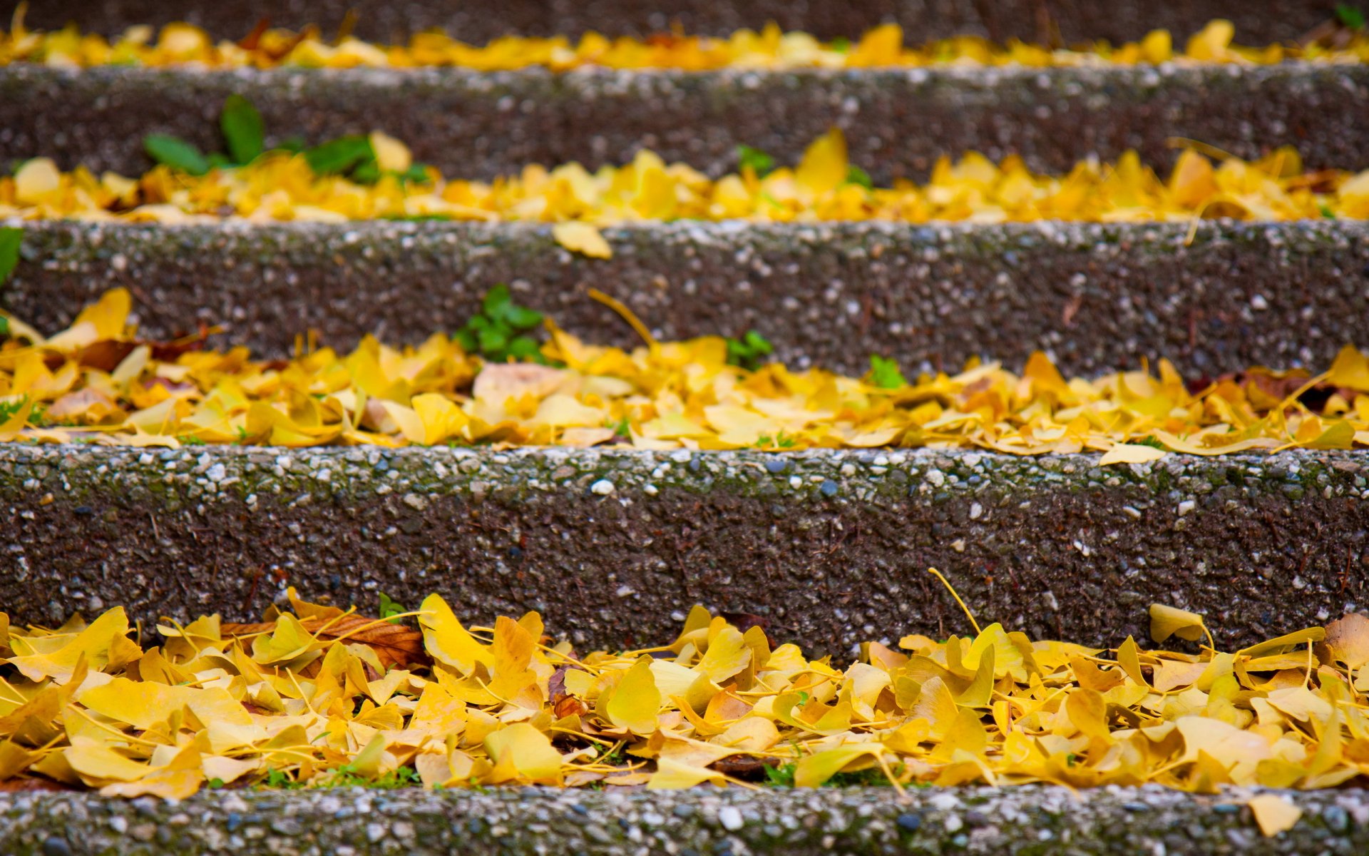 Feuilles tombées jaunes sur les Marches - fond d'écran de téléphone