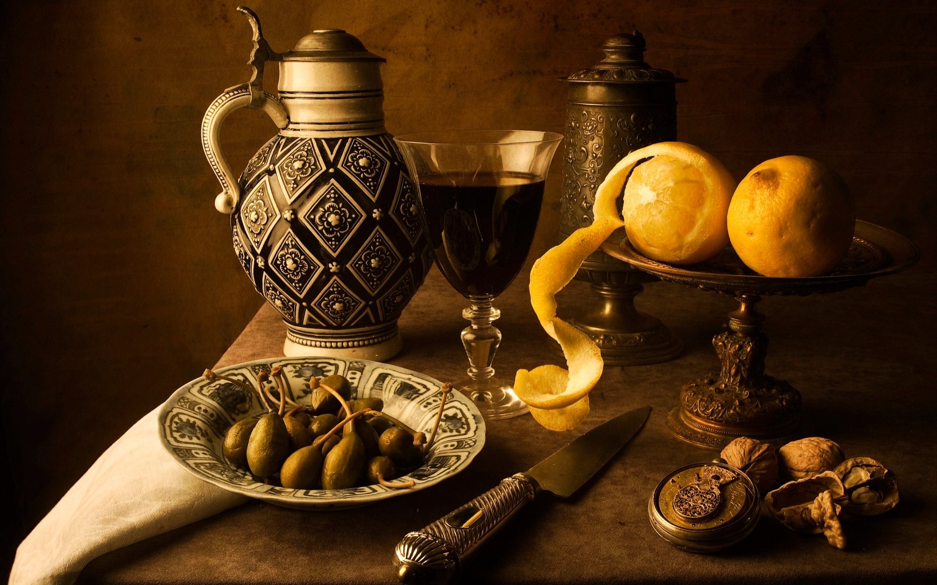 Tags:oranges, cruche, verre à vin, couteau, style, rétro, vintage