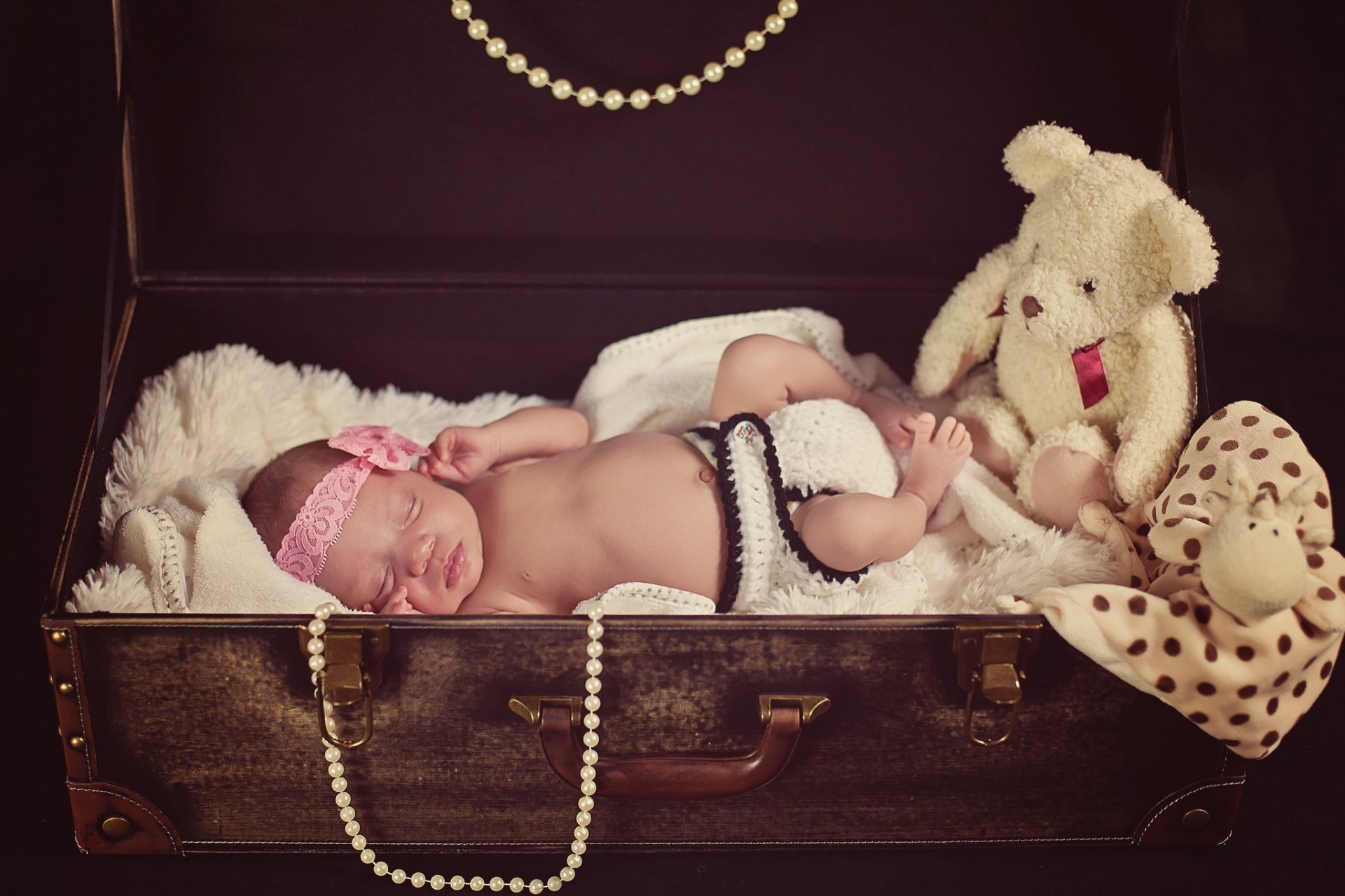 Bébé dort dans une valise Vintage - fond d'écran de bureau