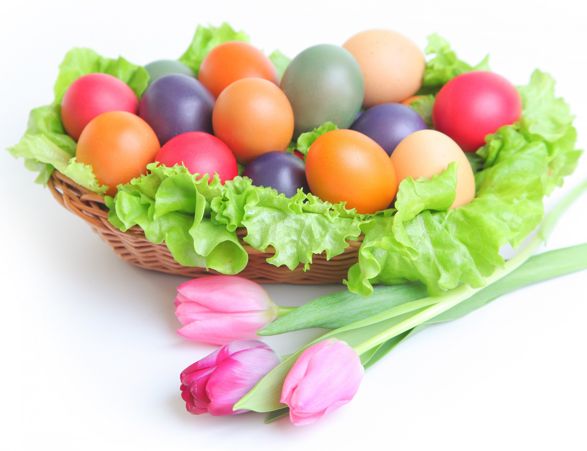 Ambiance de Pâques, avec des tulipes fraîches - fond d'écran de bureau