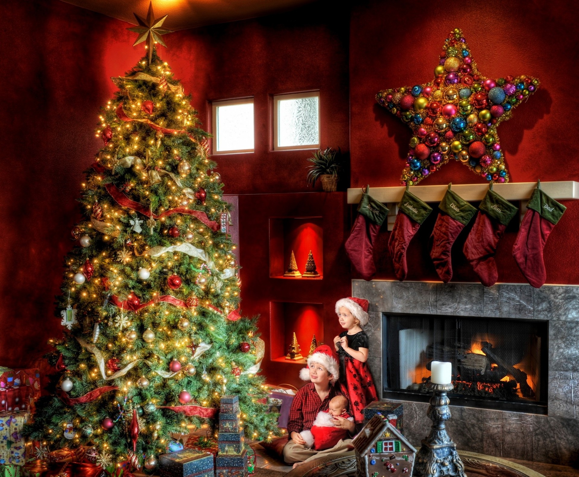 Jouets cadeaux père Noël neige - fond d'écran de bureau