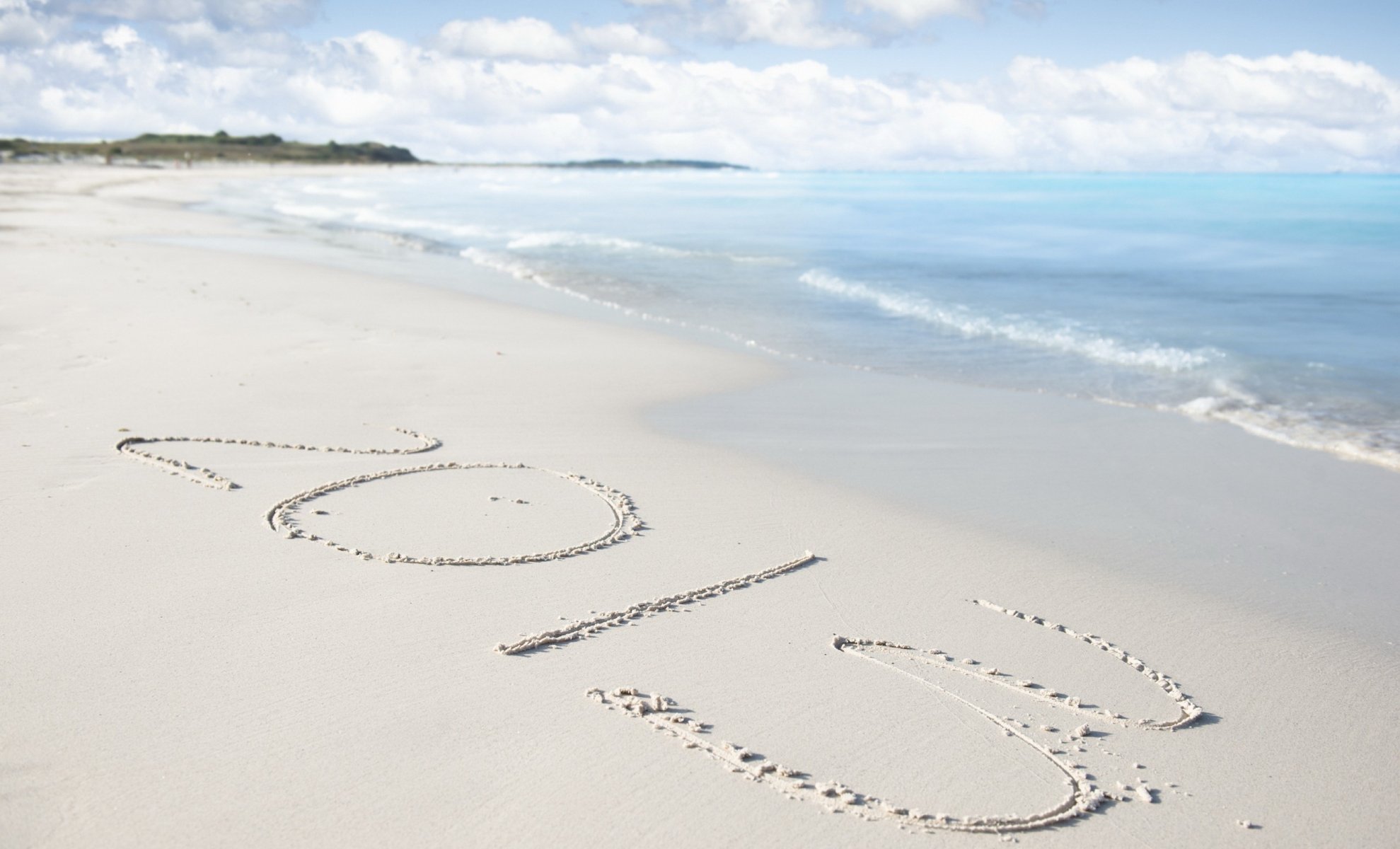 Inscription 2013 sur le sable sur la plage près de la mer - fond d'écran de téléphone