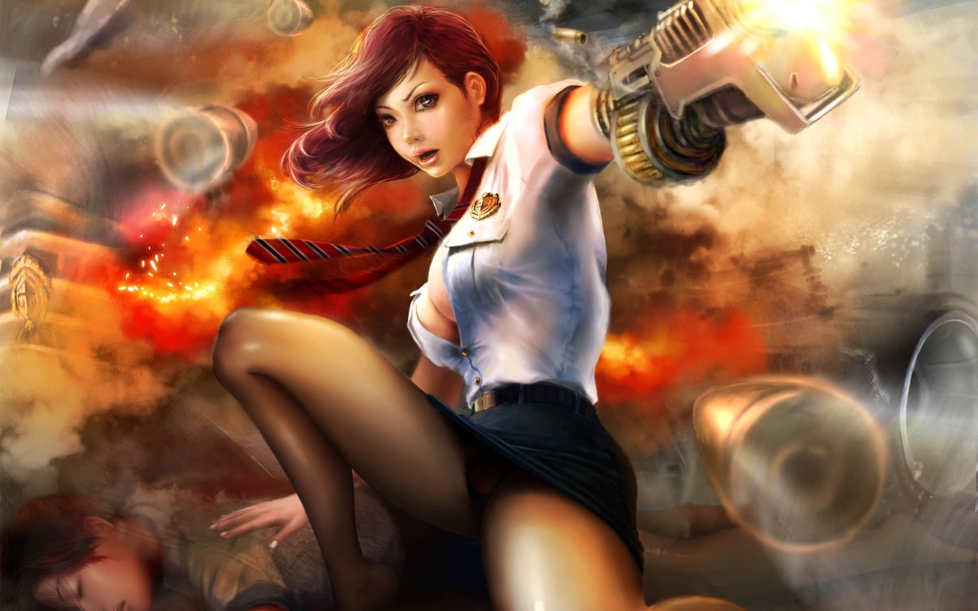 Art fille en t-shirt avec des armes - fond d'écran de bureau