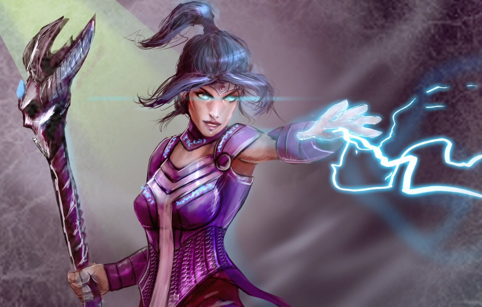 Tags:fiction art fille vue queue cheveux bâton magie