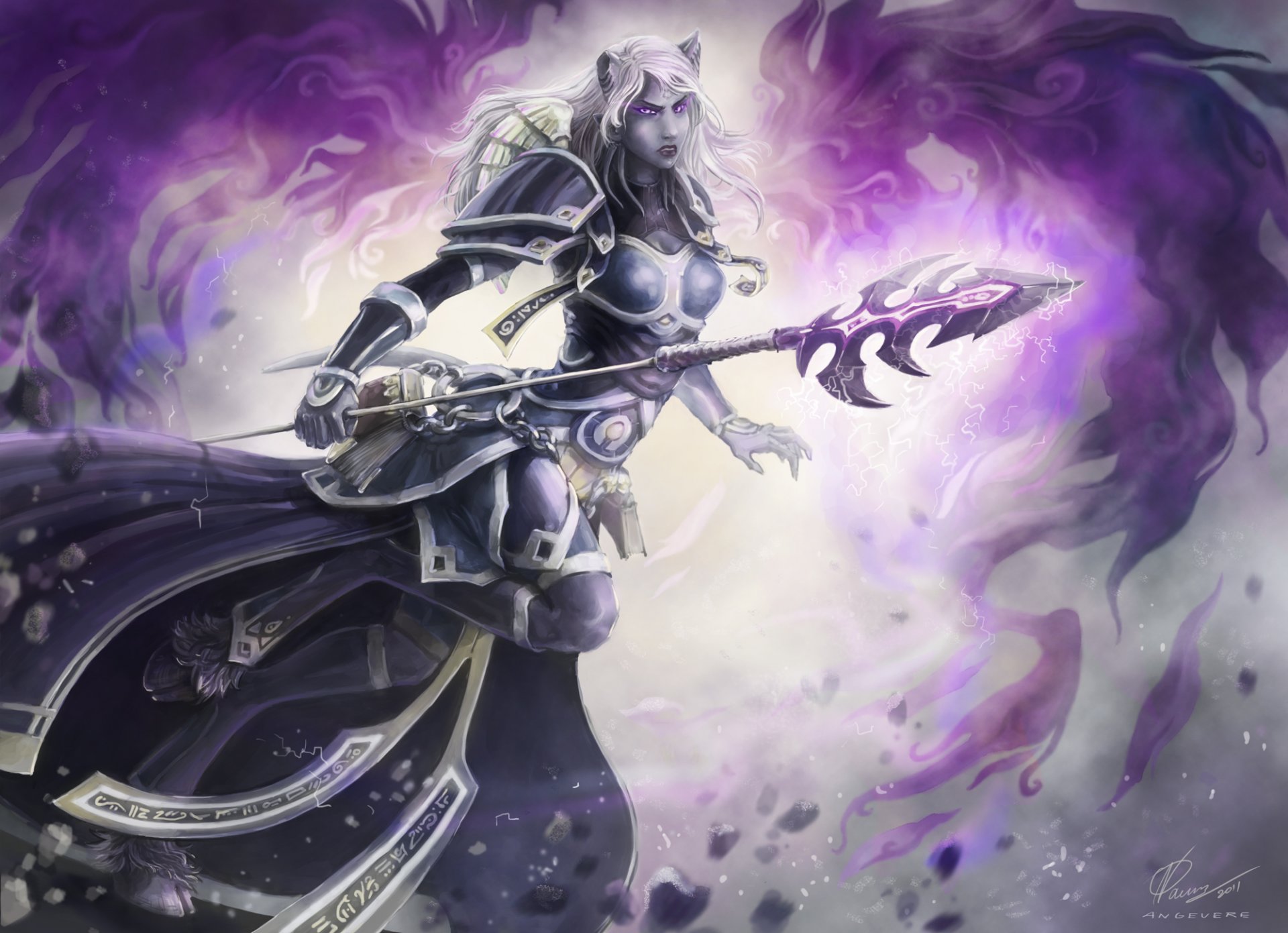 Tags:art, démoniaque, fille, cornes, sabots, ailes, lance