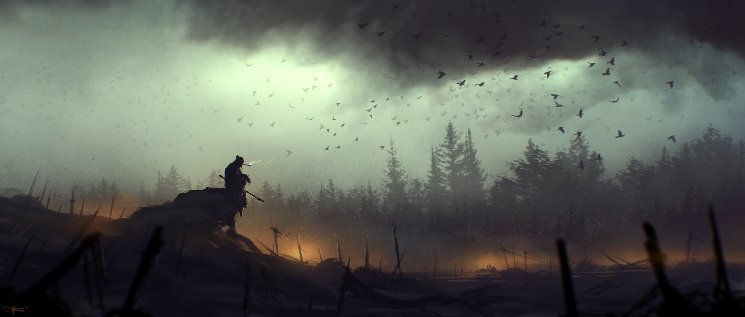 Tags:art, champ de bataille, solitaire, mort, nuages, oiseaux, feu
