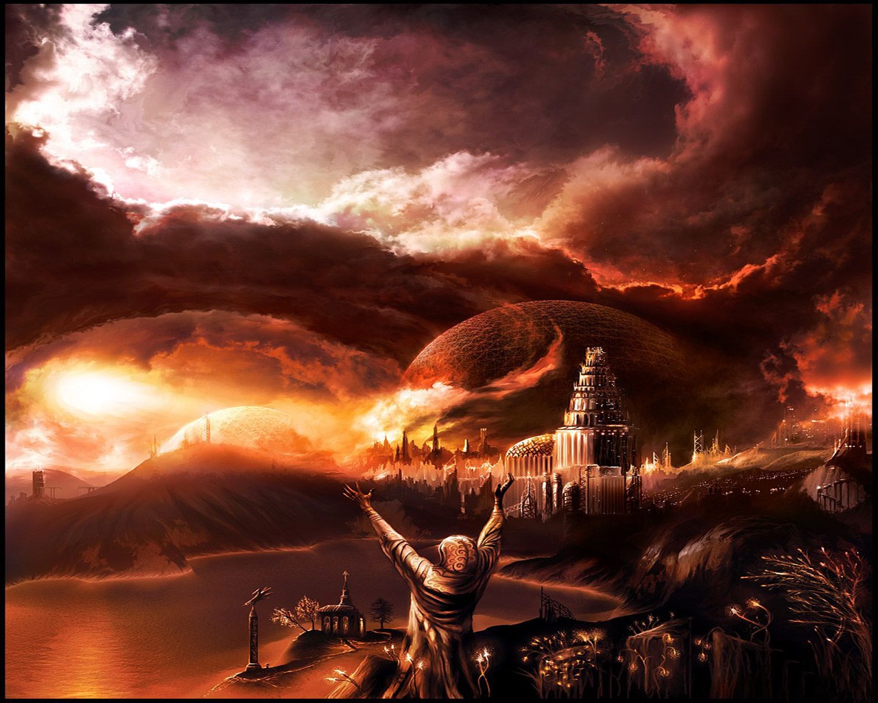 Le ciel du soir s est lâché au-dessus de la ville - fond d'écran de bureau