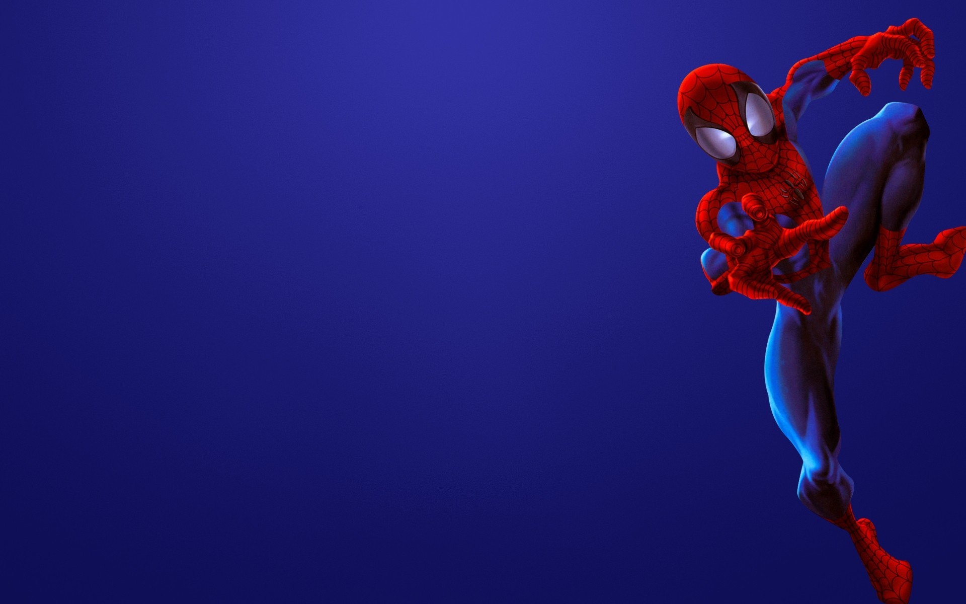 Spider-Man saute sur fond bleu - fond d'écran de bureau