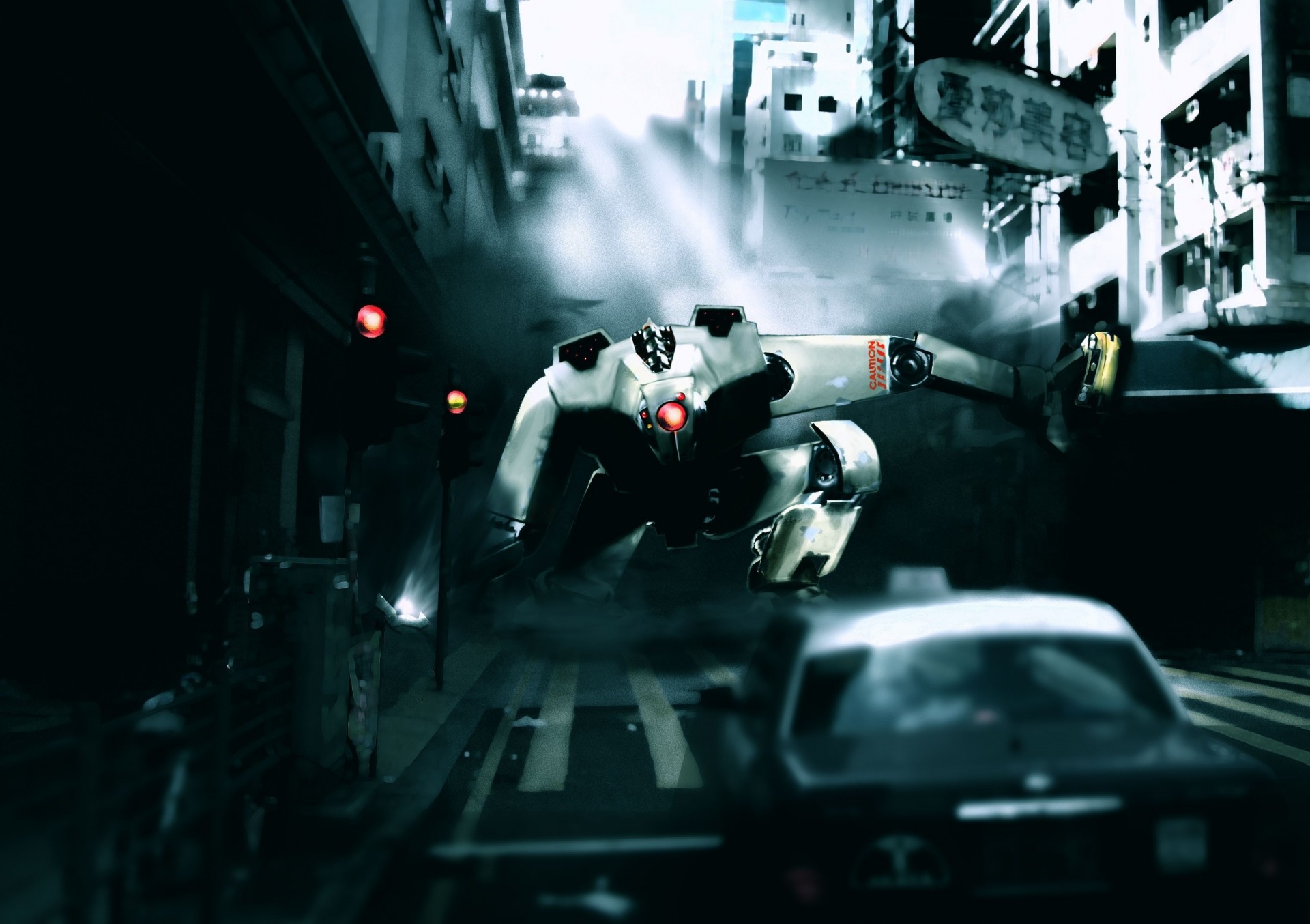 Un puissant robot détruit la ville - fond d'écran de bureau
