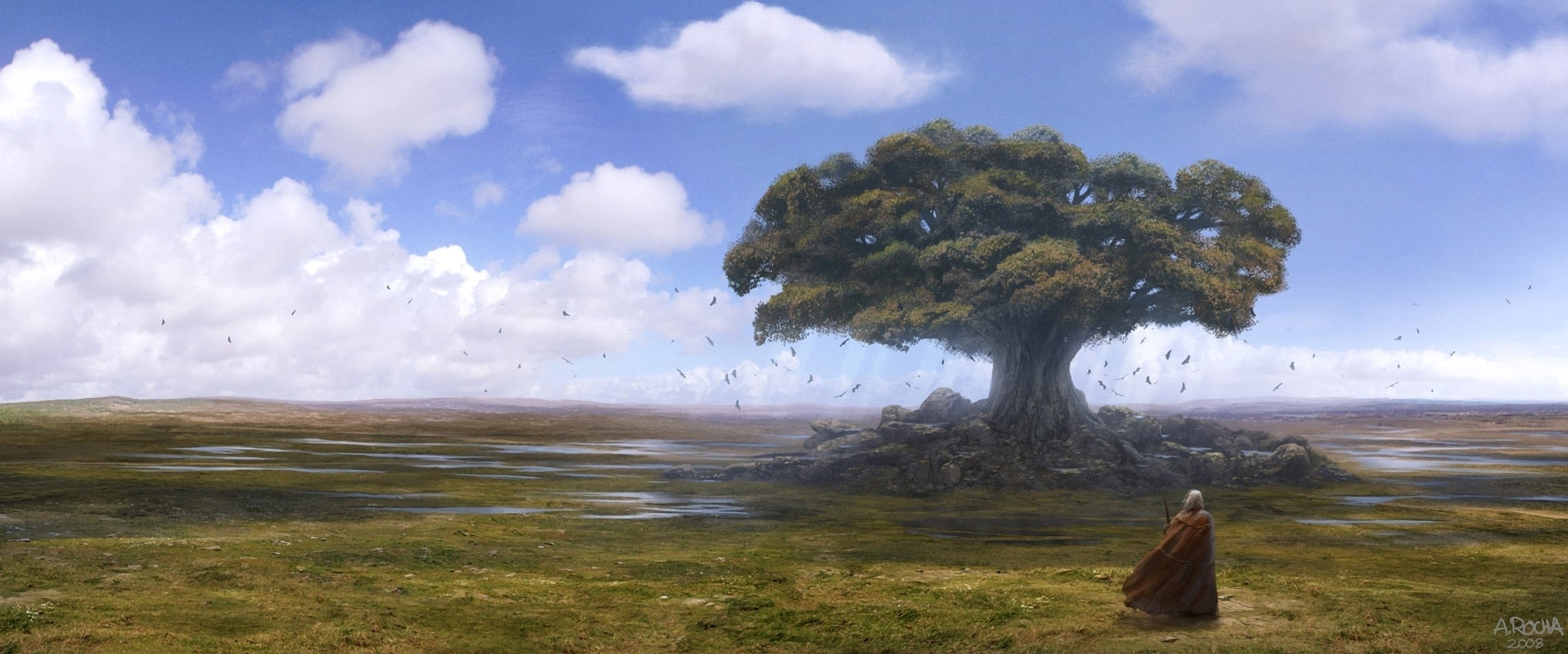 Tags:art, arbre, herbe, horizon, eau, nuages, champ, corbeaux, voyageur