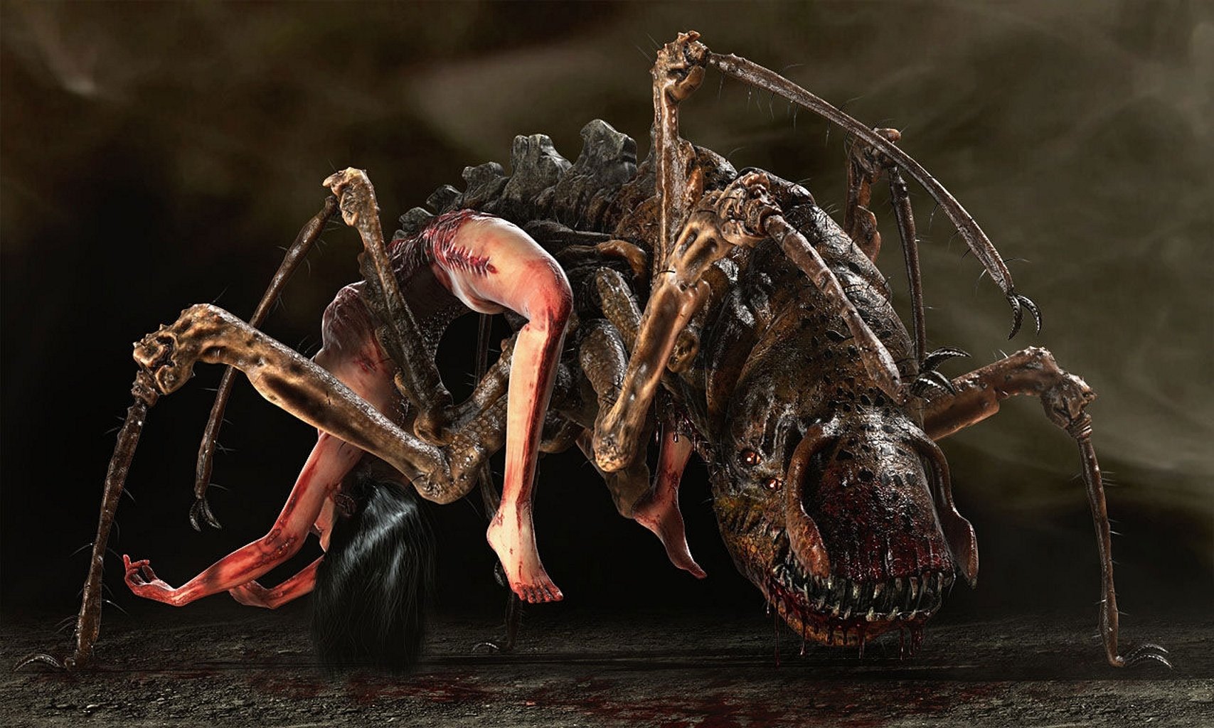 Araignée mutante portant une victime - fond d'écran de téléphone