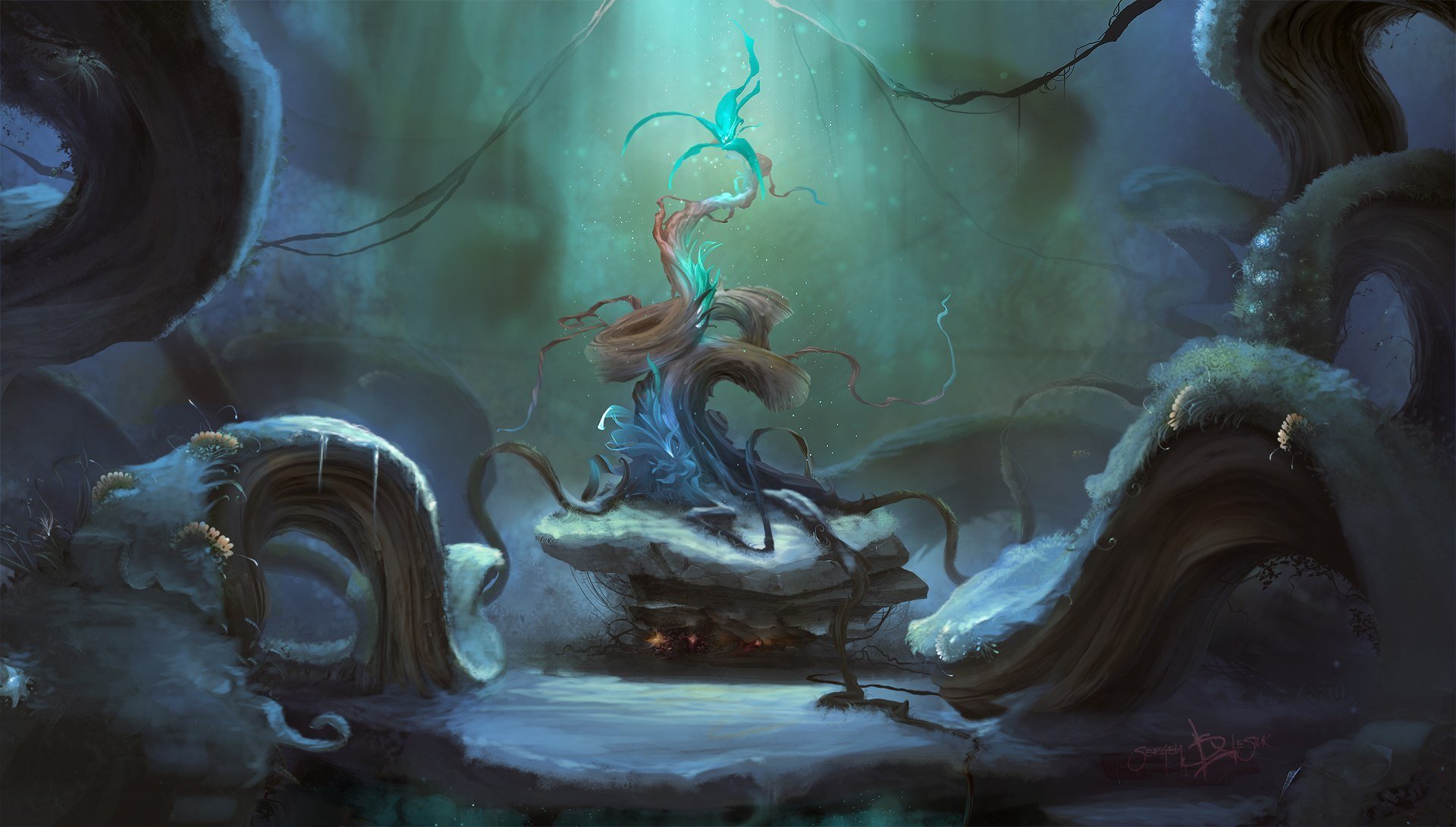 Fantasy forêt arbres fleur magique lumière - fond d'écran de téléphone