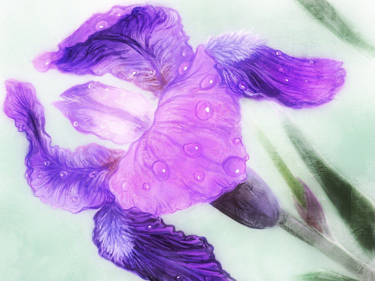 Dessin d Iris avec des gouttelettes d eau sur les pétales - fond d'écran de bureau