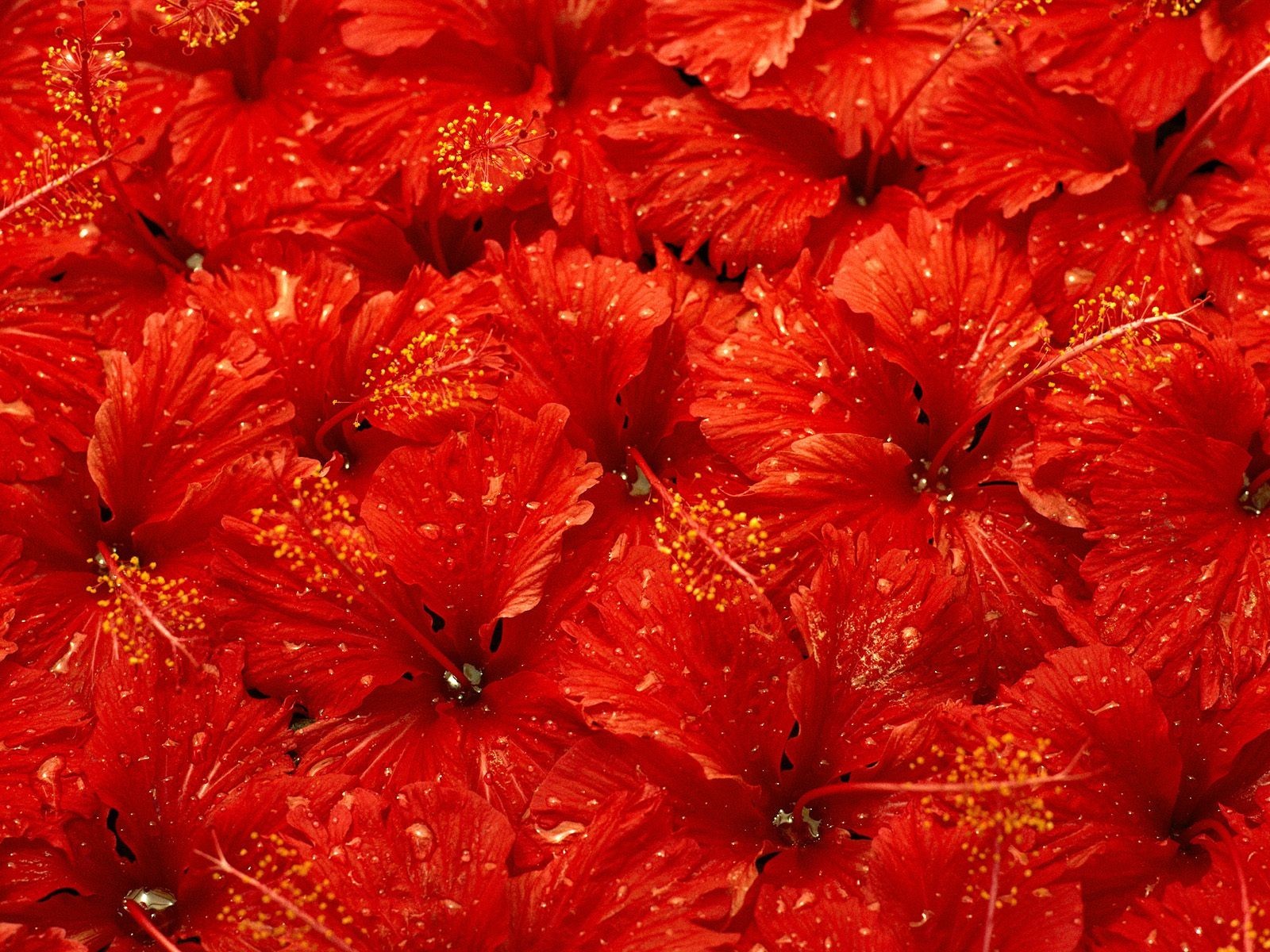 Fleurs rouges avec des gouttes d eau - fond d'écran de bureau