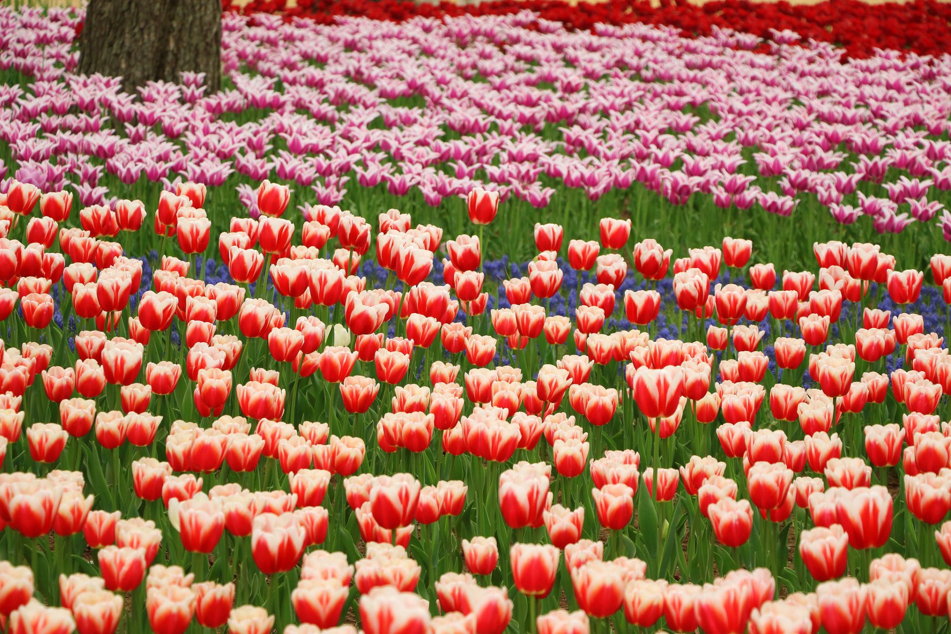 Champ de tulipes colorées lumineuses
